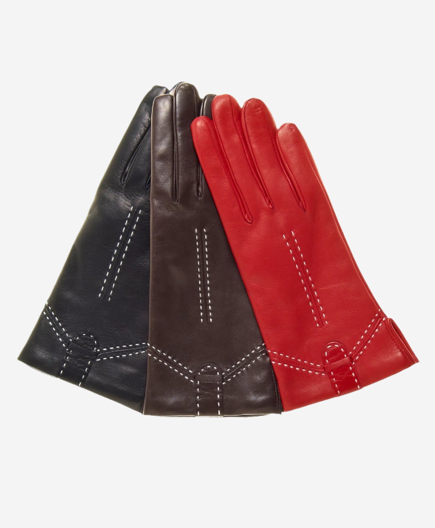CC4005 (black) - Women's Italian Cashmere Lined Leather Gloves with Decorative Stitching - Leather Gloves Online - Luxury Leather Gloves - 1