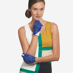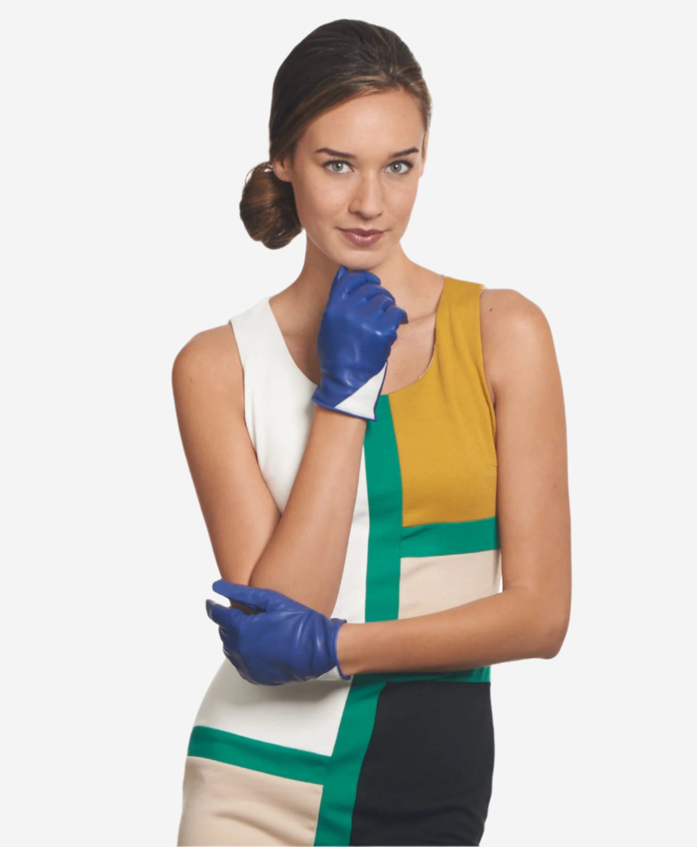CS4414 (blue/cream) - Women's Italian Color Blocking Silk Lined Leather Gloves - Leather Gloves Online - Luxury Leather Gloves - 1