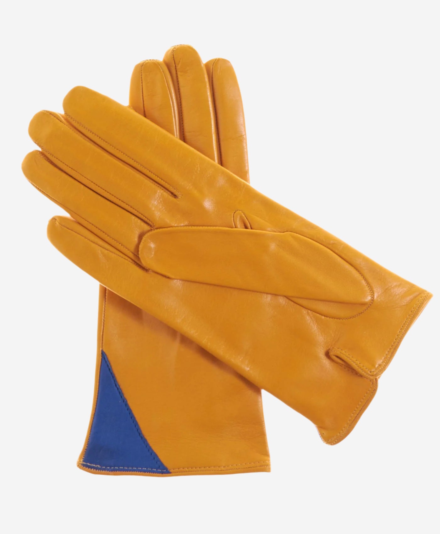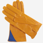 CS4414 (yellow/blue) - Women's Italian Color Blocking Silk Lined Leather Gloves - Leather Gloves Online - Luxury Leather Gloves - 1