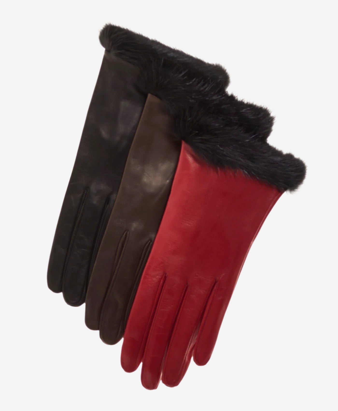 CS4616 (darkbrown) - Women's Italian Silk Lined Leather Gloves with Mink Cuff- Leather Gloves Online - Luxury Leather Gloves - 1