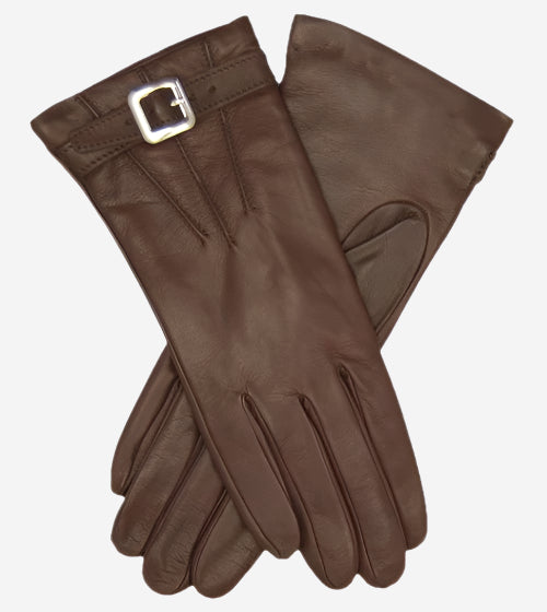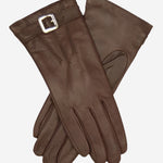 CC4201 (brown) - Women's Italian Cashmere Lined Leather Gloves with Buckle - Leather Gloves Online - Luxury Leather Gloves - 1