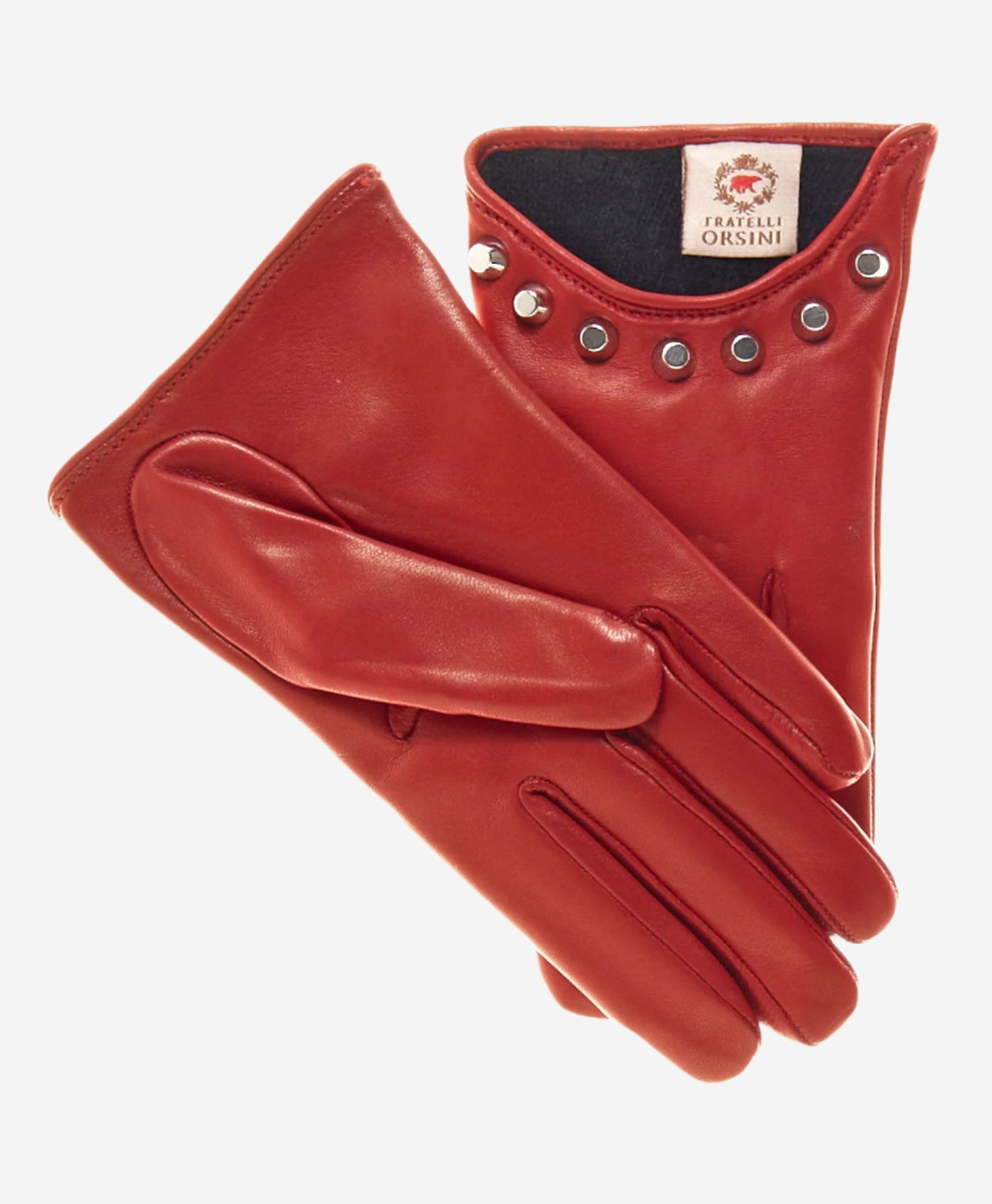 CC4391 (red) - Women's Italian Cashmere Lined Leather Gloves  with Studs - Leather Gloves Online - Luxury Leather Gloves - 1