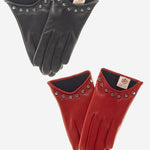 CC4391 (red) - Women's Italian Cashmere Lined Leather Gloves with Studs