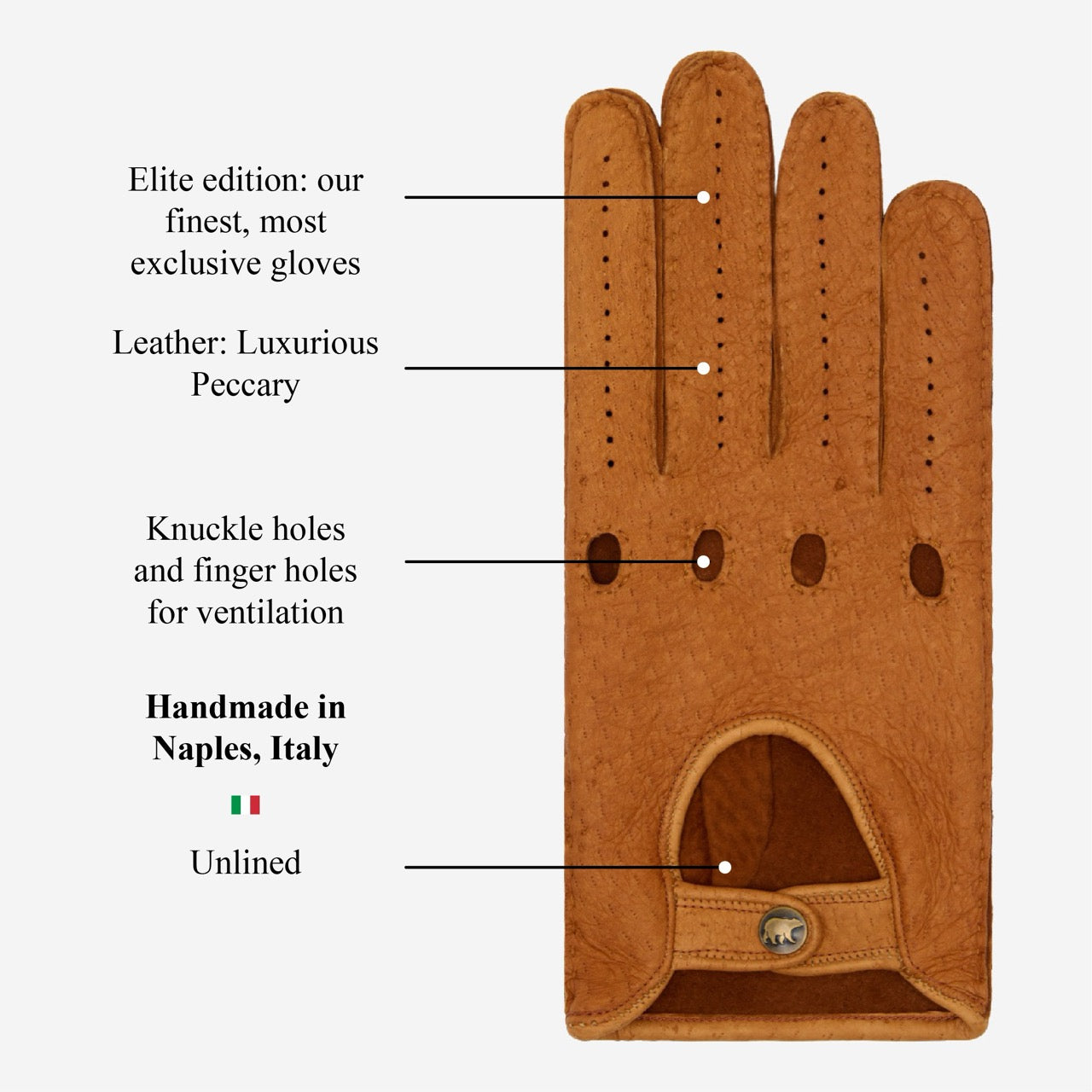 The result is a glove that combines exceptional softness, natural elasticity, and lasting durability—designed to mold perfectly to your hand and endure for decades. It’s this combination of rare materials, expert craftsmanship, and uncompromising Italian quality that makes peccary gloves one of the most prestigious glove choices in the world.