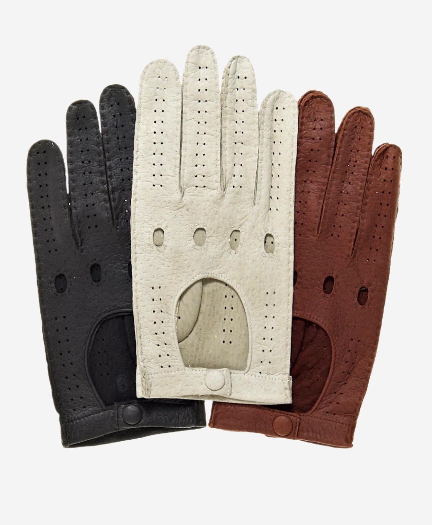 Return to classic elegance and style with these Peccary driving gloves. In the 1930's Peccary was used for the finest Men's gloves you could buy, but in recent years has been almost non-existent. We've revived the classic look and feel of those extraordinary gloves. Peccary has an elegant look and an unbelievably soft feel, which is only enhanced by the finest artisanal hand sewing. The colors are earthy and natural, and show Peccary's unique grain. Although not inexpensive, these gloves are worth every penny of their cost.