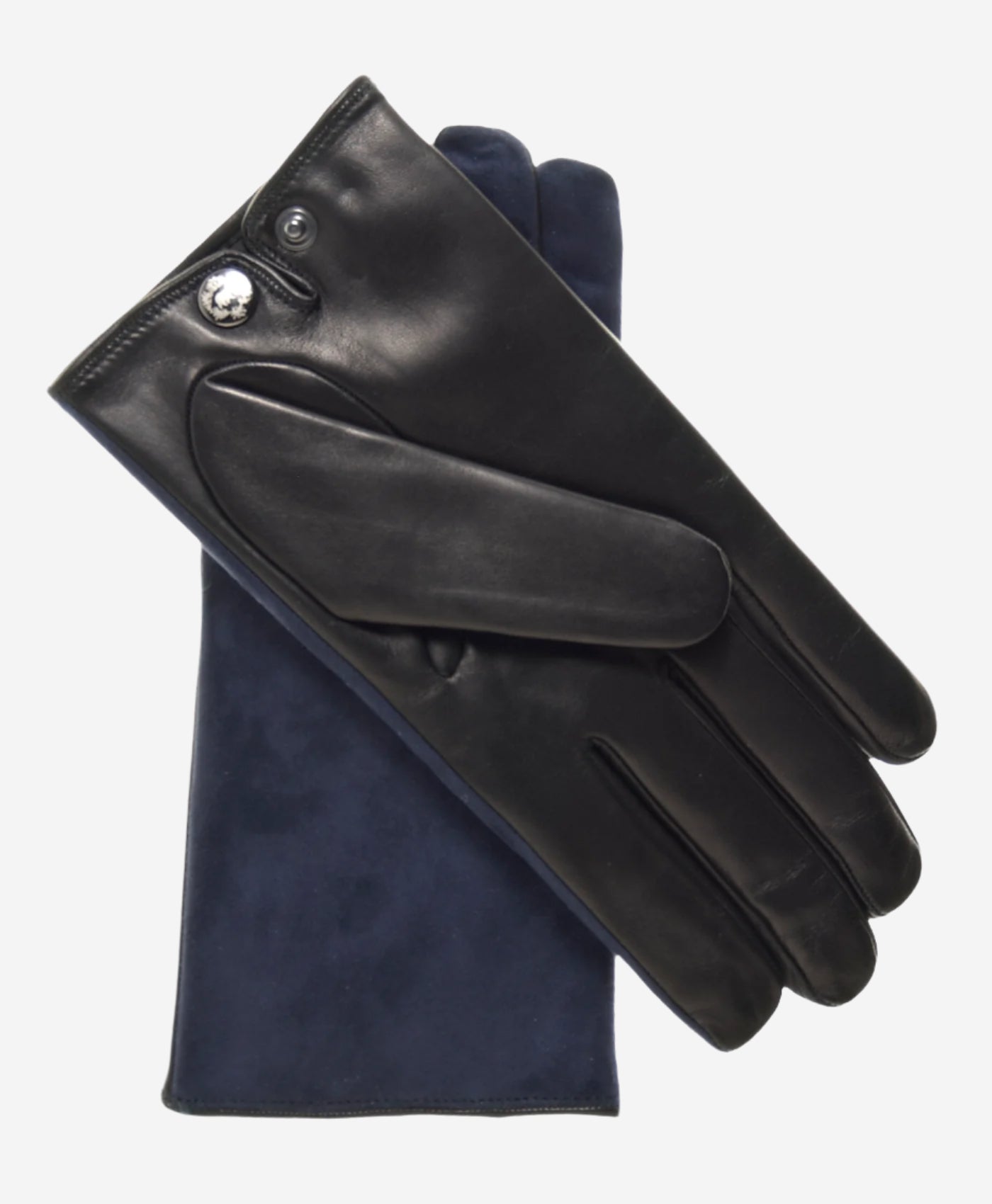 CC3414 (blue/black) - Men's Suede and Lambskin Gloves with Cashmere Lining with Snap - Leather Gloves Online - Luxury Leather Gloves - 1