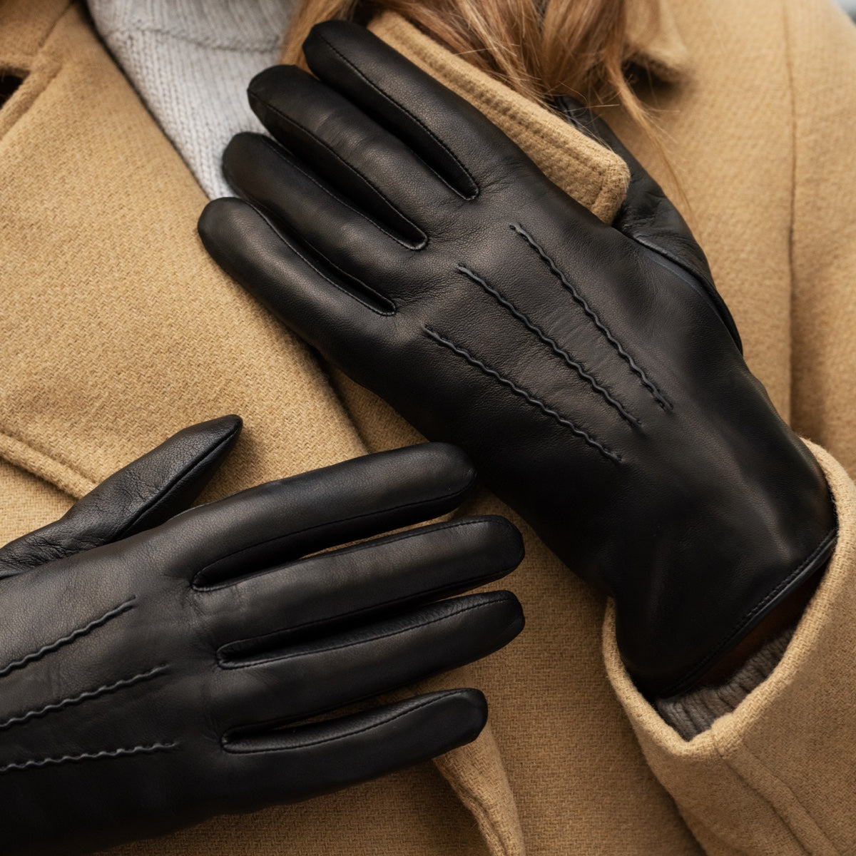 Our most exclusive black leather gloves are handmade in Naples, Italy, by skilled artisans with over two centuries of glove-making heritage. Using only the finest lambskin, deerskin, peccary, and suede leathers, each pair is constructed with care, precision, and a commitment to enduring quality. Designed to last a lifetime with proper care, these gloves are more than seasonal accessories—they are an investment in craftsmanship, tradition, and everyday elegance.
