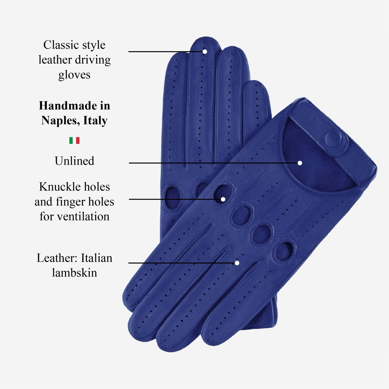 Alessa (blue) - Classic Italian lambskin leather driving gloves