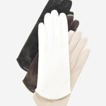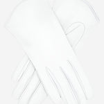 FS02 (white) - Women's Italian Silk Lined Leather Gloves with Curved Hem
