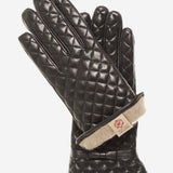 CA4643 (black) - Women's Cashmere Lined Quilted Leather Gloves with Bow