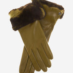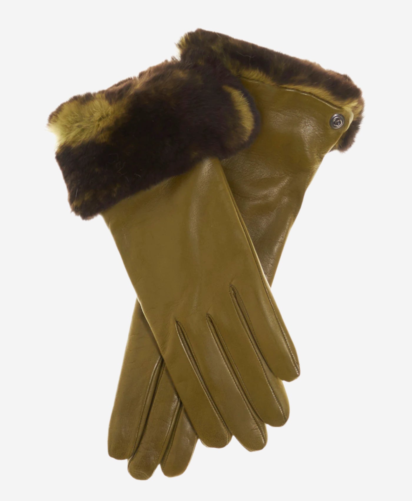 CC4514 (moss) - Women's Italian Rex Rabbit Fur Cuff Lambskin Gloves