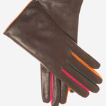 Made in Italy by Fratelli Orsini, these lambskin leather gloves for women are elegant and fun at the same time. The shell is the finest lambskin leather like all our gloves by Fratelli Orsini, yet it's the added color on the fourchettes between the fingers that make the gloves and their wearer stand out. Lined in luxurious 100% Italian cashmere.   Vibrant, colorful and full of life, these beautiful gloves are a great choice for dress and casual wear.