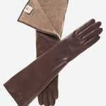 CC4879W8 (brown) - Elbow Length Italian Cashmere Lined Gloves with Side Zipper