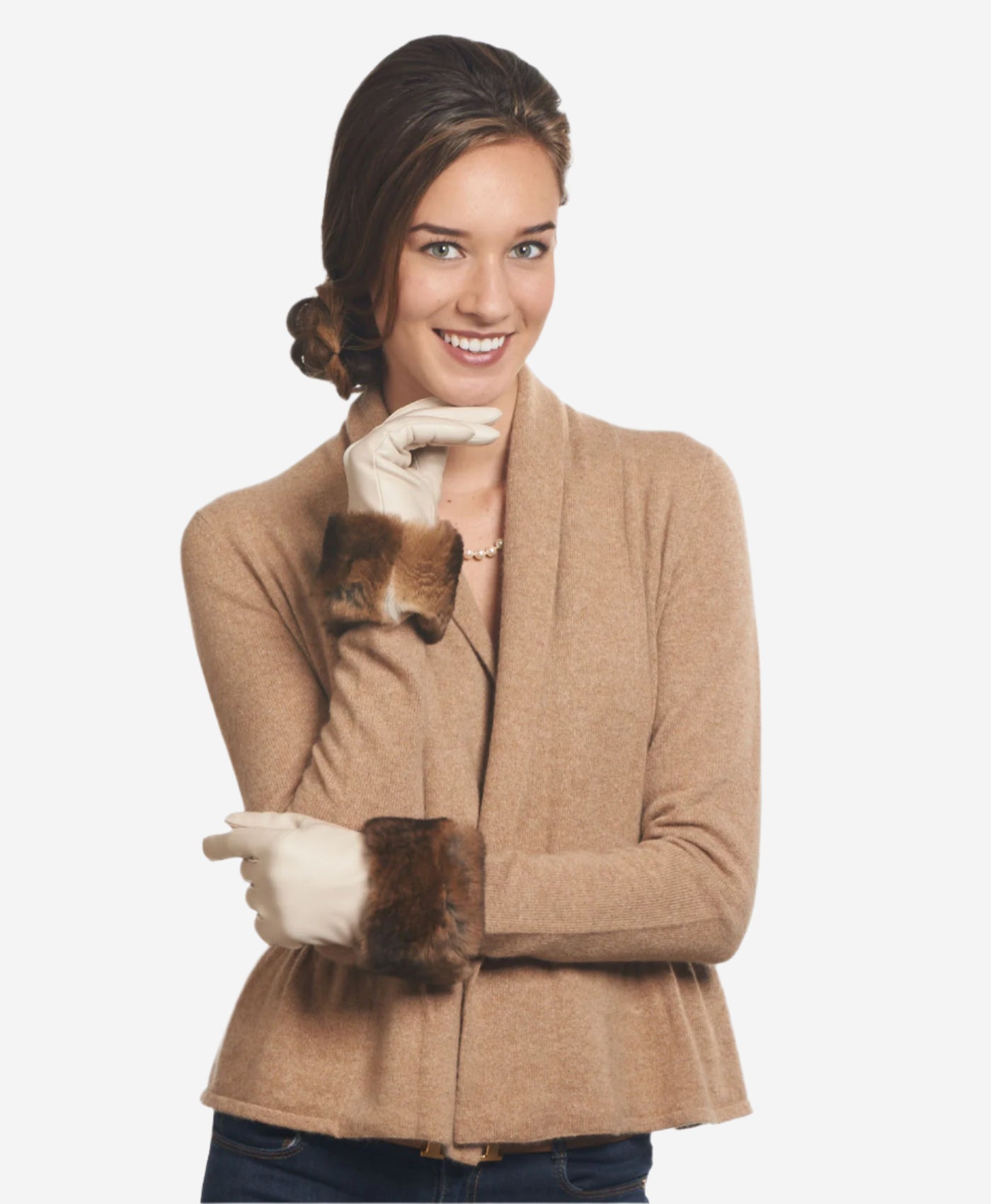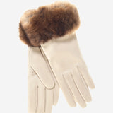 CR4450 (cream) - Women's Italian Orylag Rabbit Fur Cuff Cashmere Lined Winter Leather Gloves - Leather Gloves Online - Luxury Leather Gloves - 1