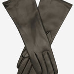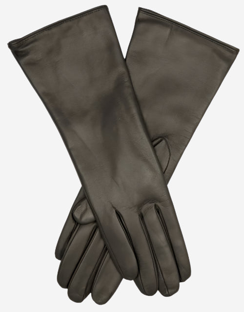 These long leather gloves for women are as simple and elegant as you can get. The longer four-button length extends approximately four inches up the arm for smooth and beautiful lines, perfect for dress occasions like the opera. There are no buttons, vents or decorations, just classic dress glove style and the unmatched craftsmanship of the designer Italian artisans at Fratelli Orsini. Inside, a luxury cashmere lining wraps your hand in softness and keeps you warm so cold weather won't ruin your special occasion.