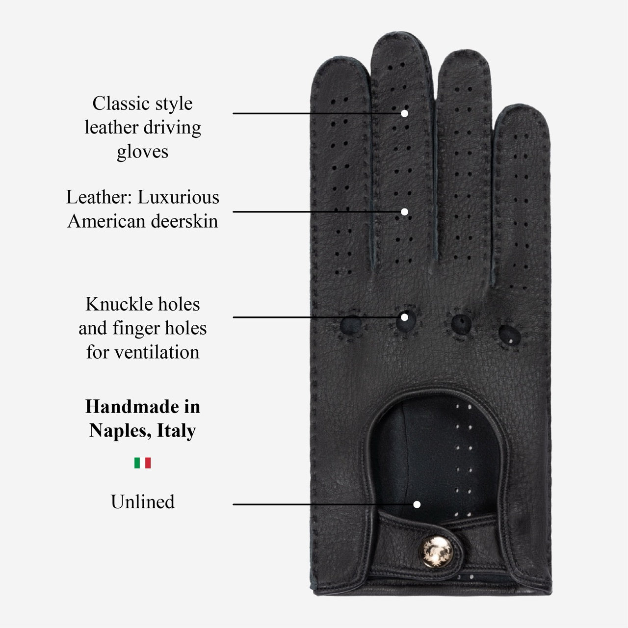 Maria (black) - Italian driving gloves made of American deerskin leather