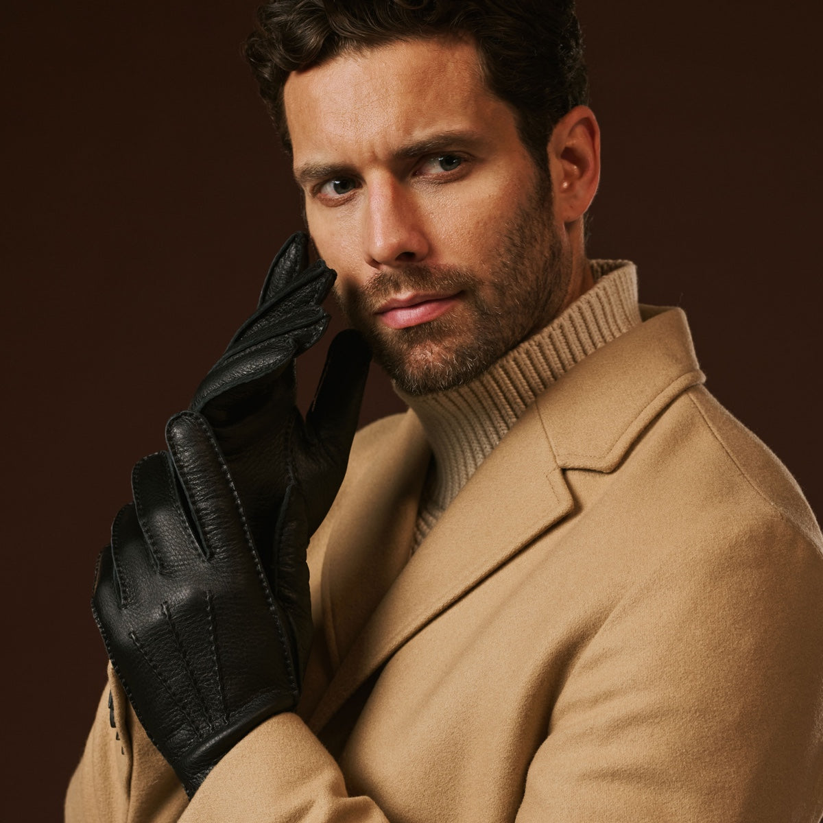 Matteo (black) - Italian gloves made of American deerskin leather with cashmere lining