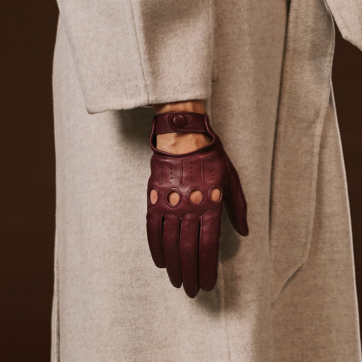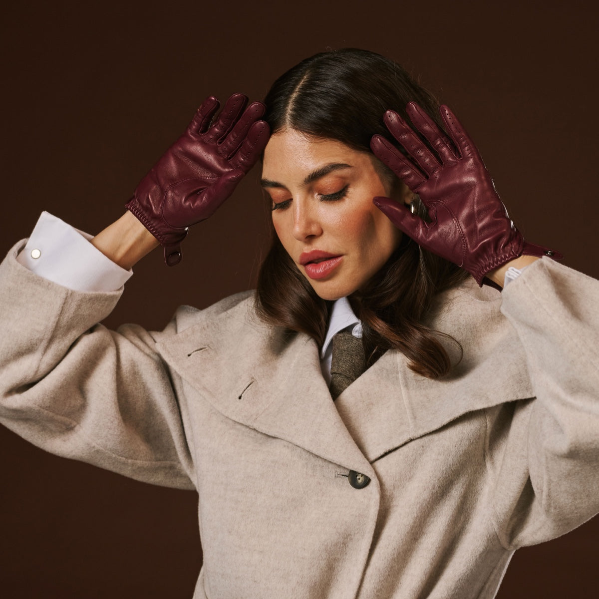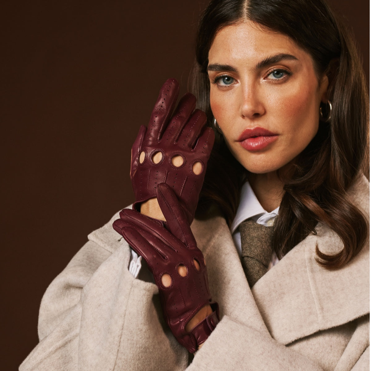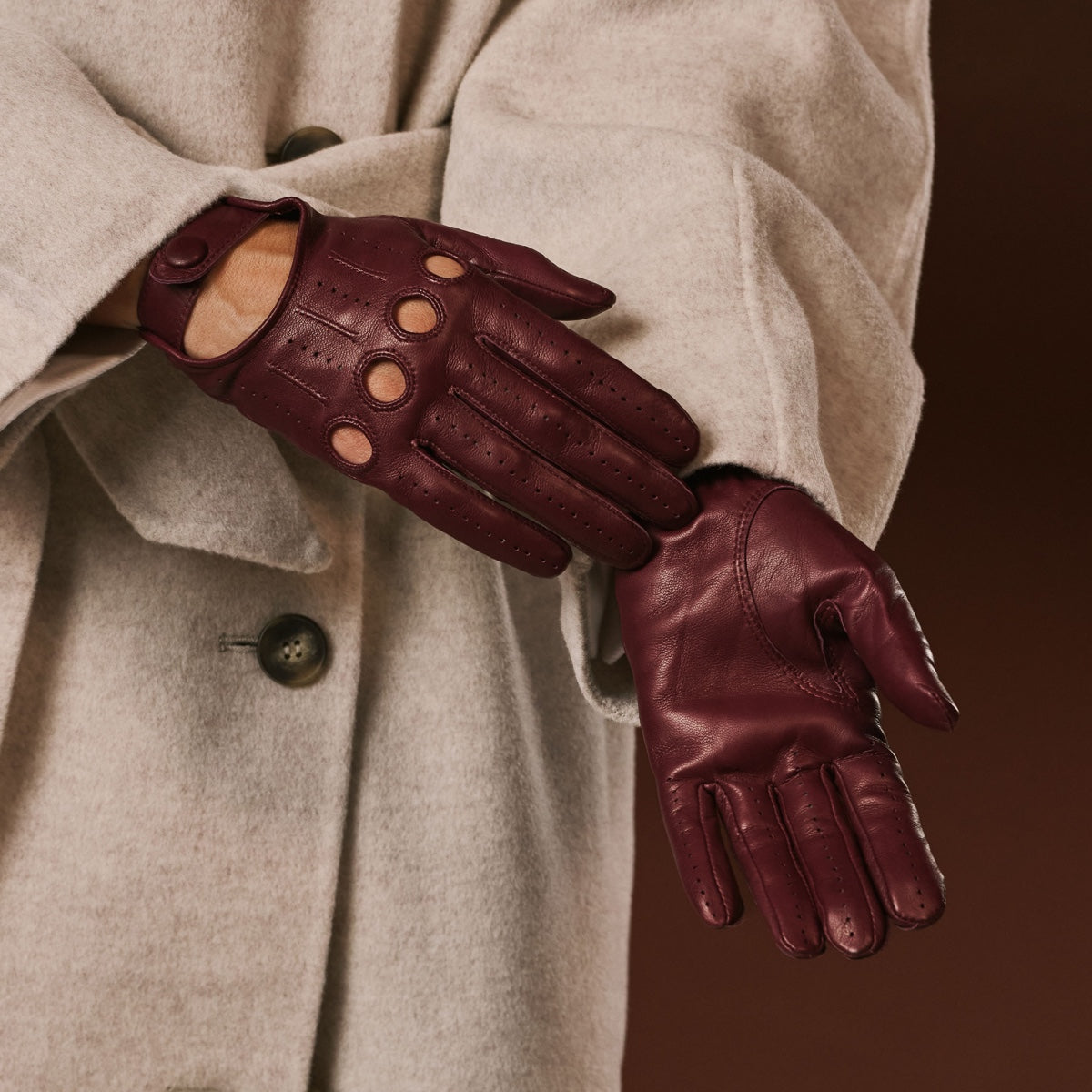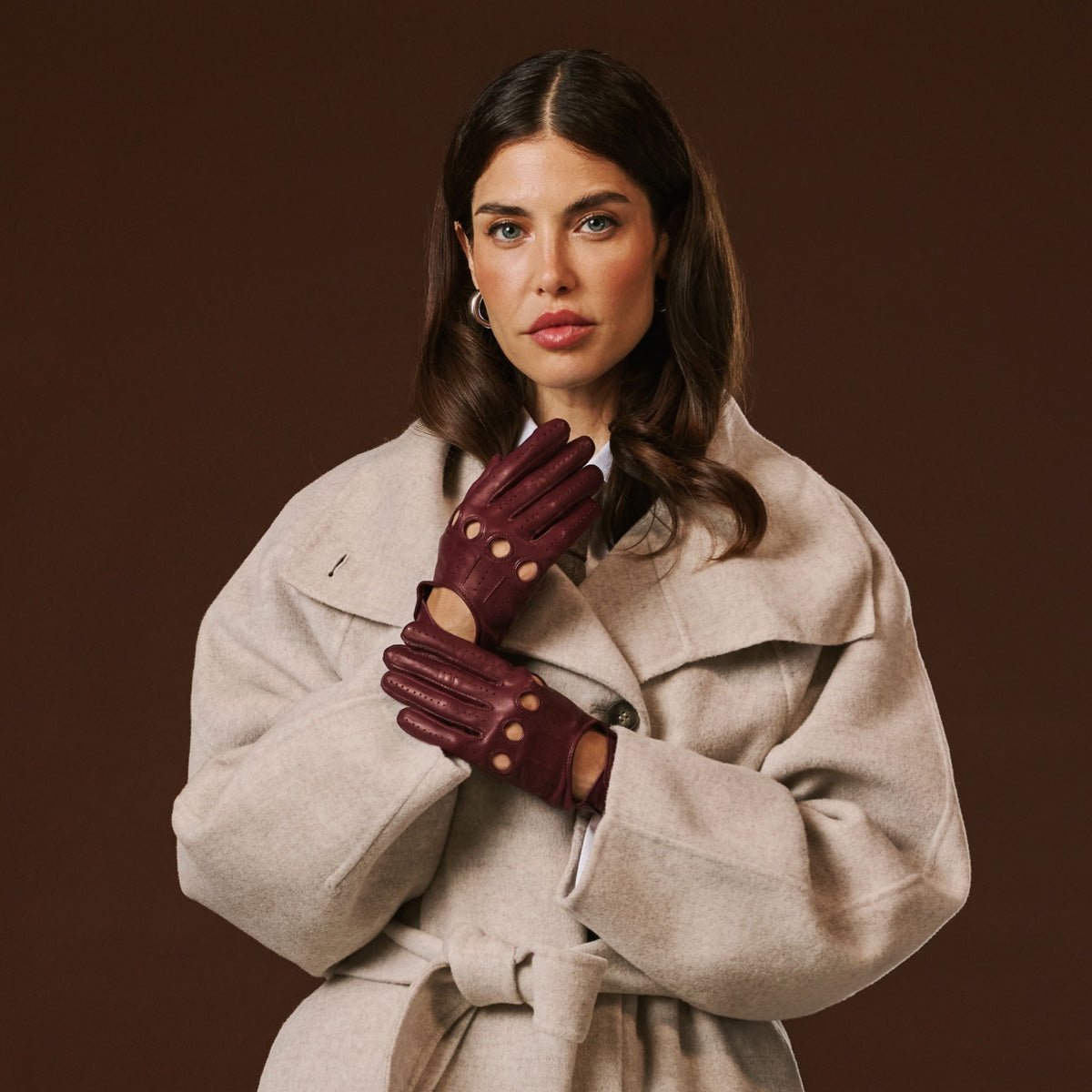 Alessa (oxblood) - Classic Italian lambskin leather driving gloves