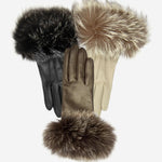 CC4066 (brown) - Women's Italian Fox Fur Cuff Cashmere Lined Leather Gloves - Leather Gloves Online - Luxury Leather Gloves - 1