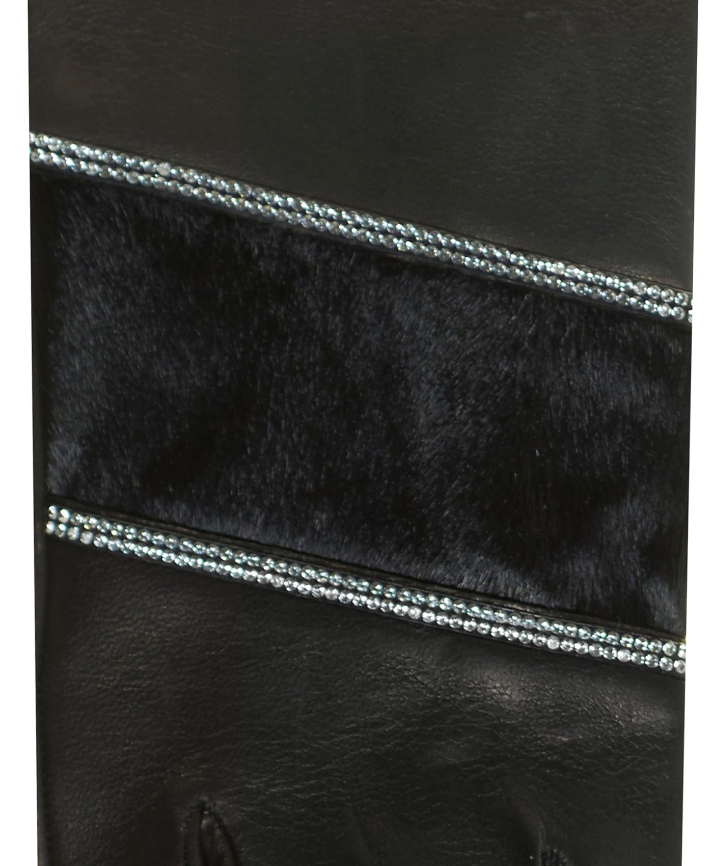 ● Elegant leather gloves with pony (haircalf) accent surrounded by Swarovski crystals