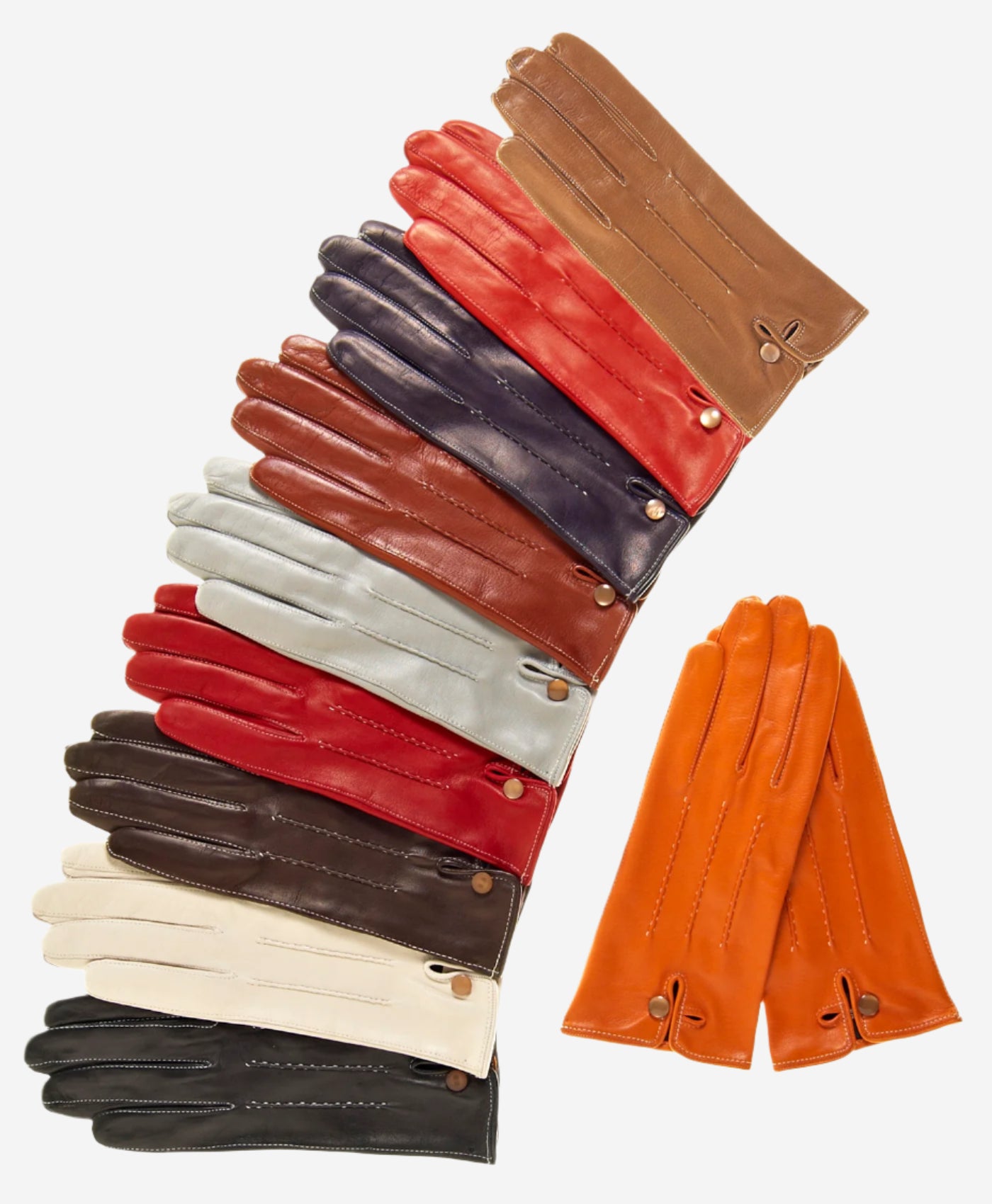 These gloves are made in Italy by artisans at Fratelli Orsini, whose attention to detail is evident in every stitch. Ten fashion colors are available, each made of the finest Italian lambskin leather and lined with smooth Italian silk to wrap your hands in luxury. With decorative stitching and a button closure on the back, these gloves provide a colorful accent to everyday wear.