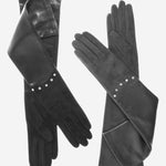 FS03W12 (slate) - Italian Leather Evening Gloves with Swarovski Crystal Accents (12 Button Length) - Leather Gloves Online - Luxury Leather Gloves - 1