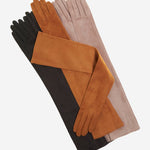 FS15W16SUEDE (taupe) - Italian Silk Lined Suede Opera Gloves - 16-Button Length