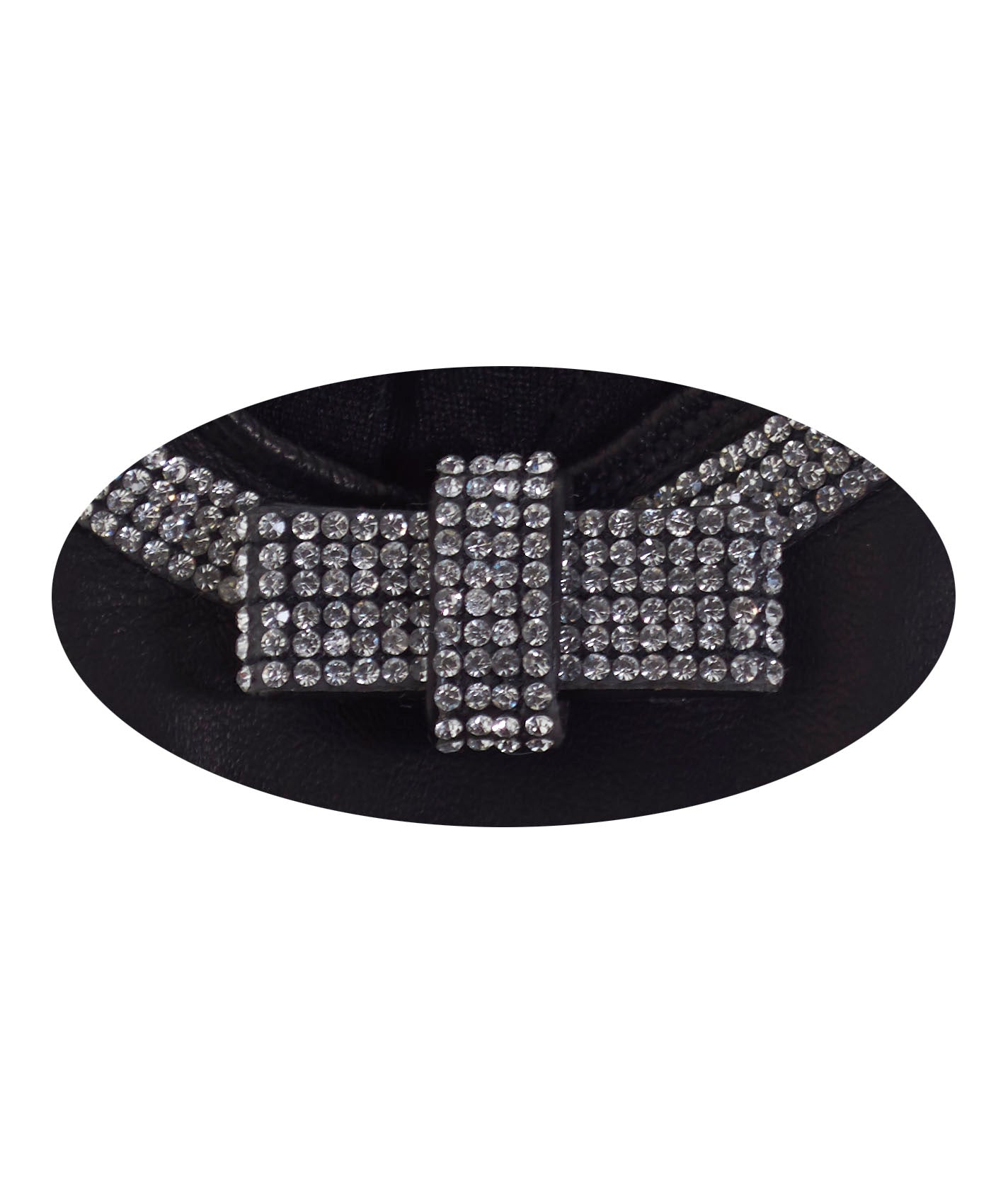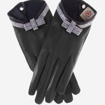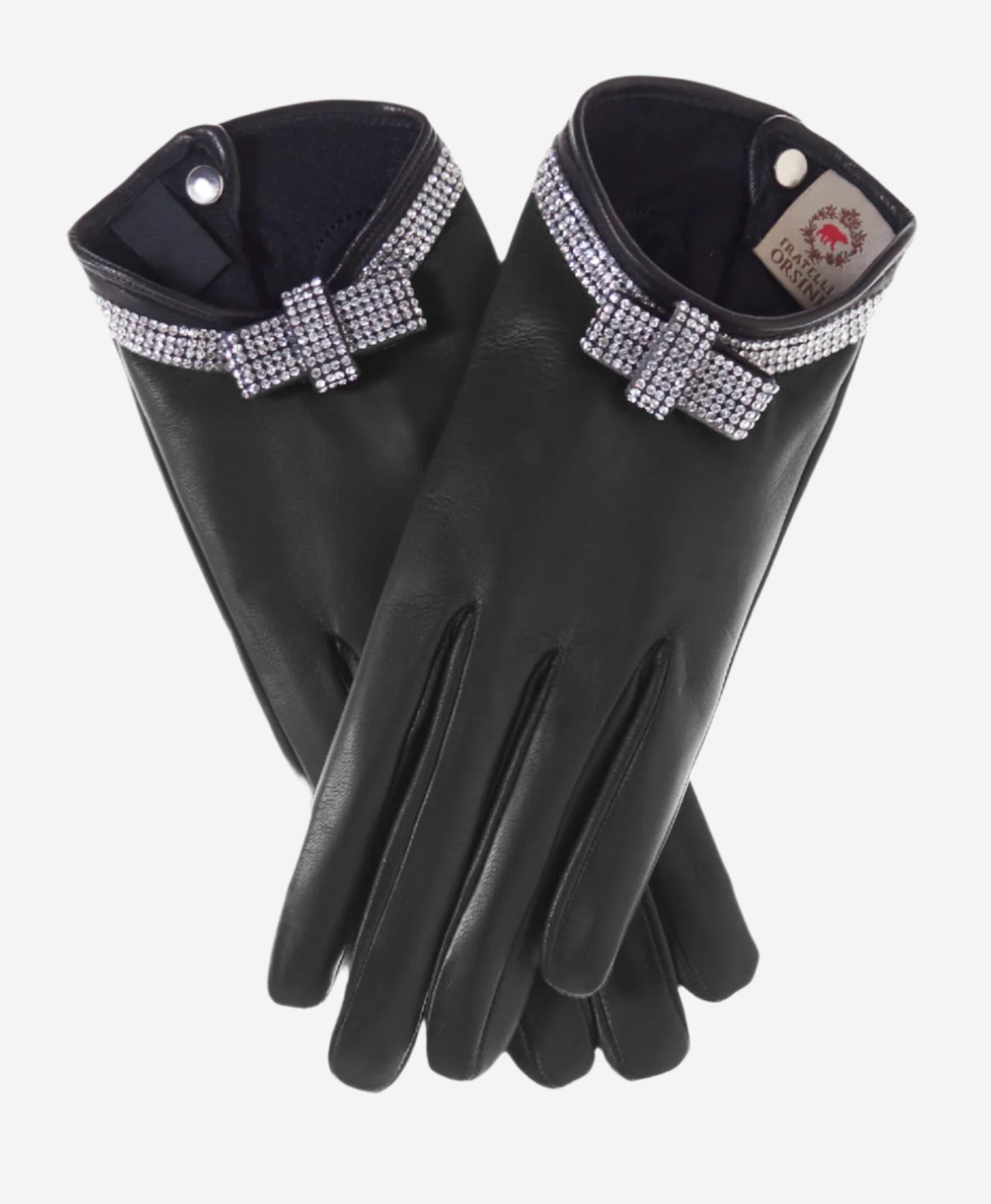 FS4321 (black) - Women's Italian Silk Lined Leather Gloves with Swarovski Crystal Bow