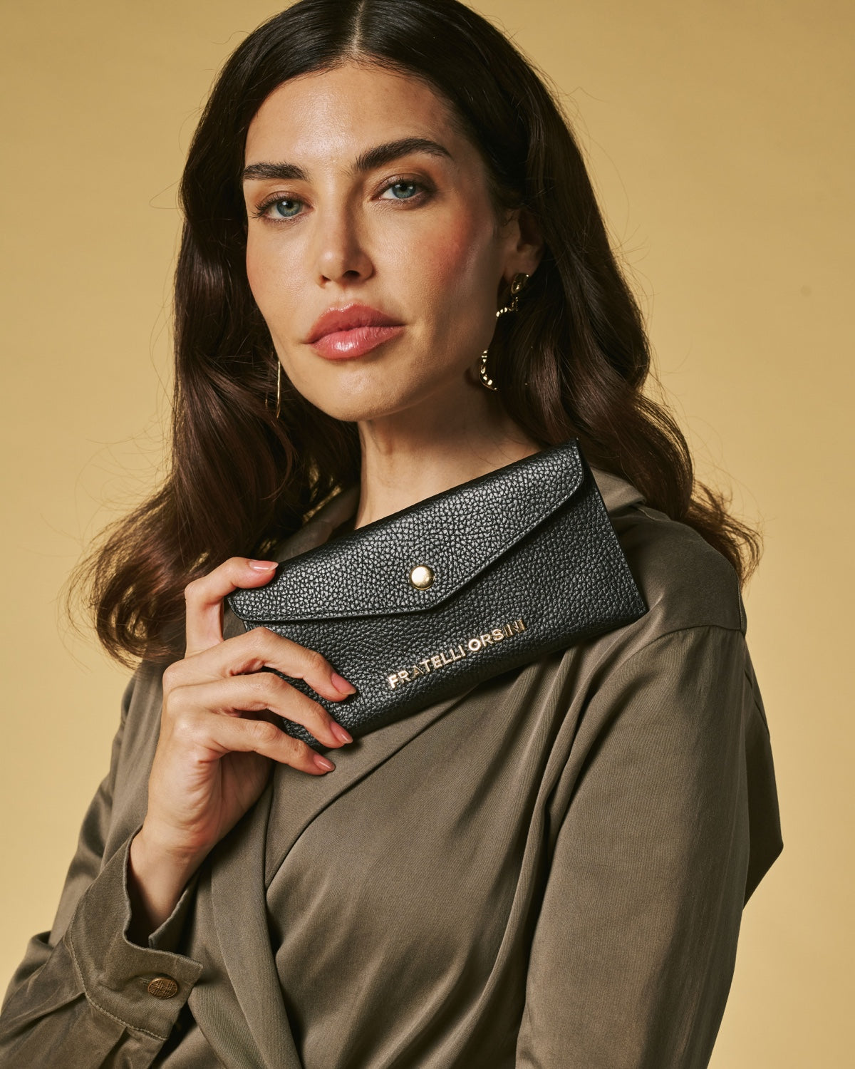Measuring 19 cm in width and 9.5 cm in height, it delivers a practical balance of elegance and function. The snap-button closure keeps essentials secure, and the polished finish reflects the careful craftsmanship behind every Fratelli Orsini piece.