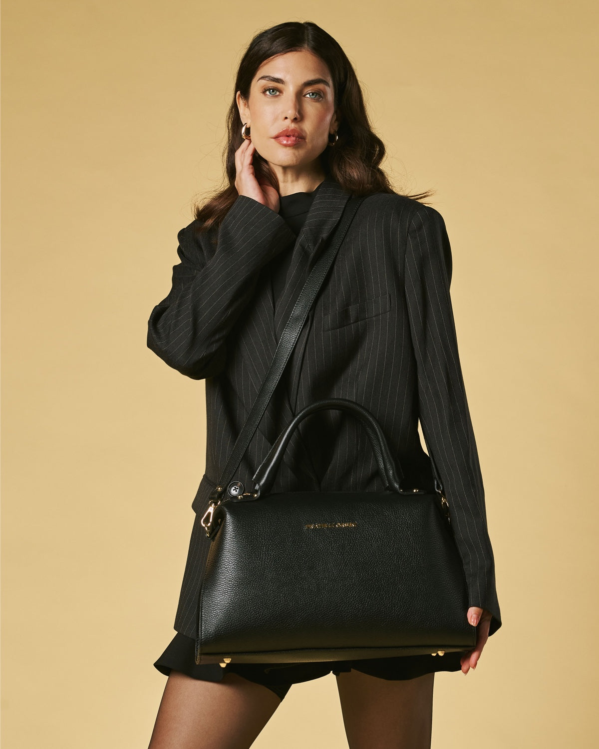 The Cecilia handbag from Fratelli Orsini reflects a timeless Italian aesthetic with a structured silhouette and a graceful top-handle design. Handmade in Italy by skilled artisans, it is crafted from full-grain calf leather that feels smooth and refined to the touch. The gold-toned detailing and clean lines give the bag a composed and elegant presence without excess decoration.