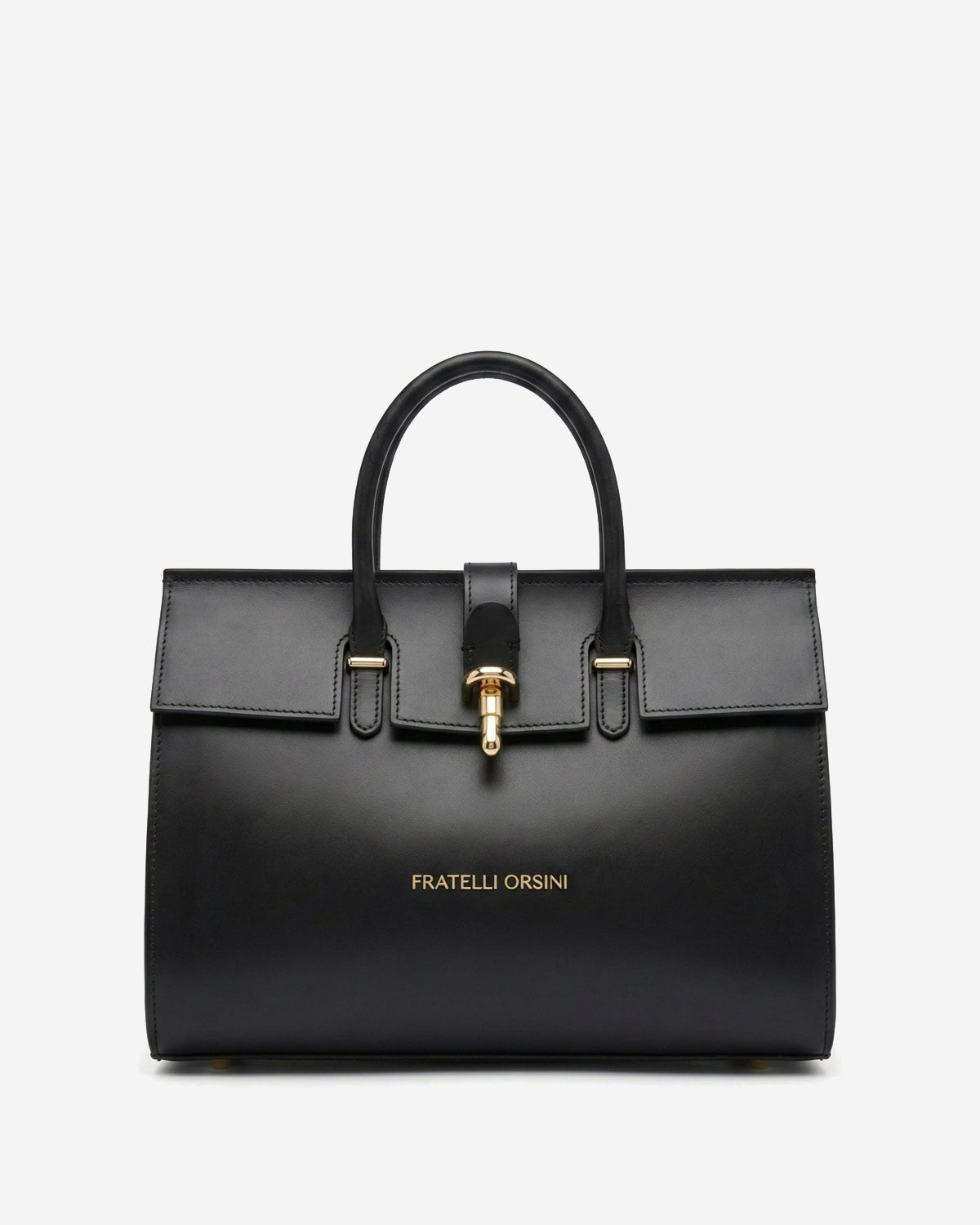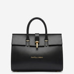 The Oriana handbag from Fratelli Orsini is defined by its structured elegance and refined top-handle silhouette. Handmade in Italy by skilled artisans, it is crafted from full-grain calf leather with a smooth finish that gives the design a polished look. The gold-toned clasp detail adds a subtle focal point while keeping the overall character understated and timeless.