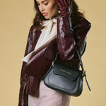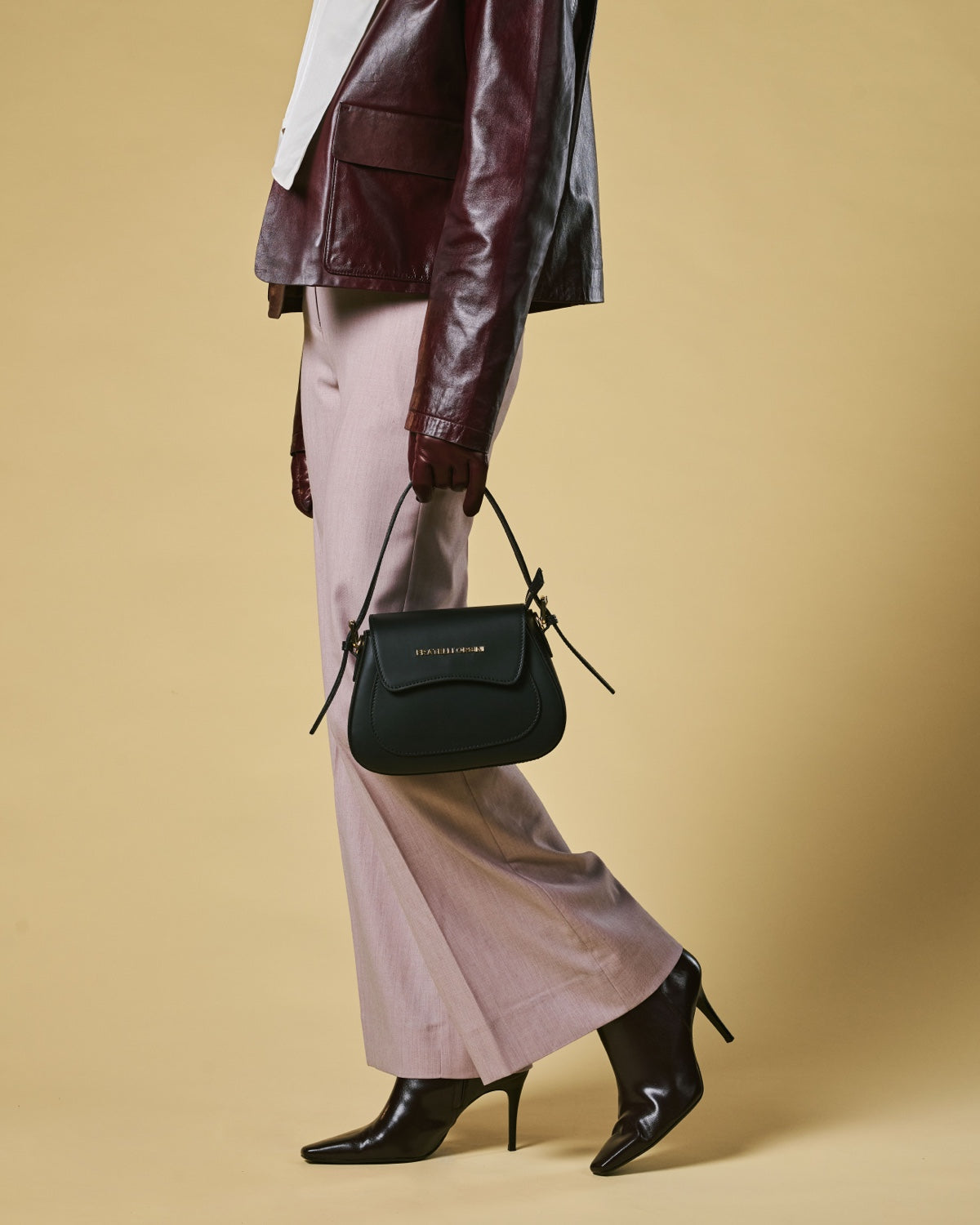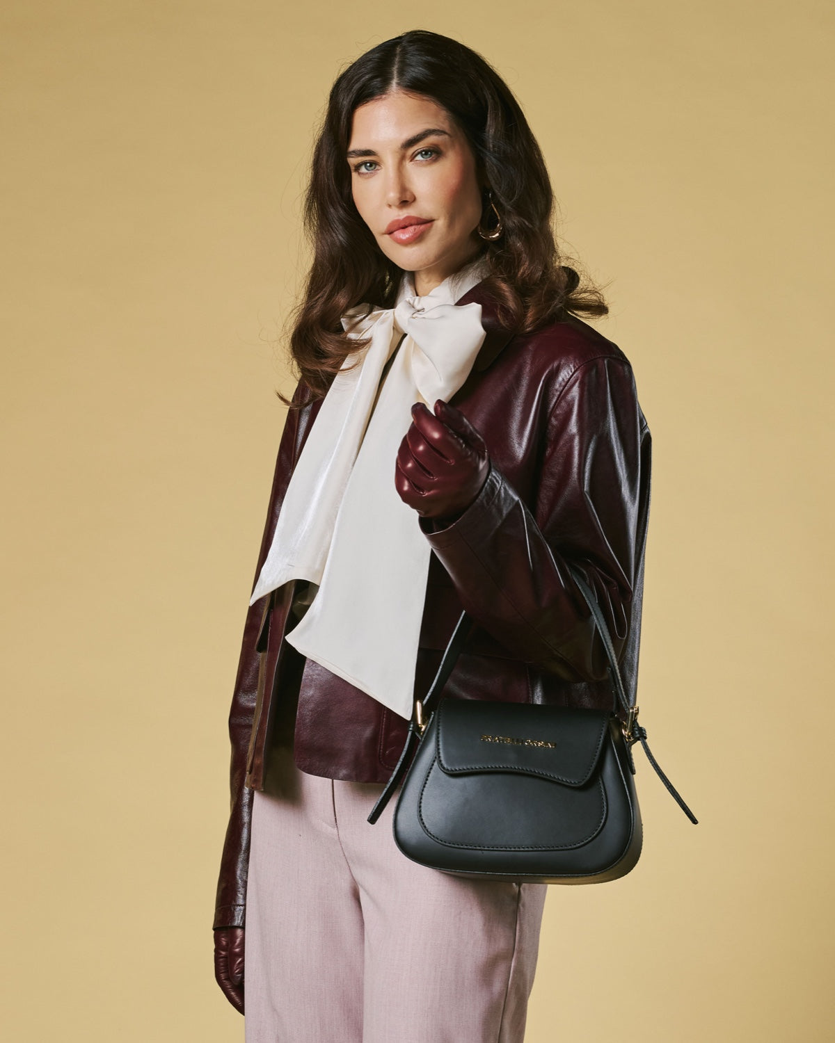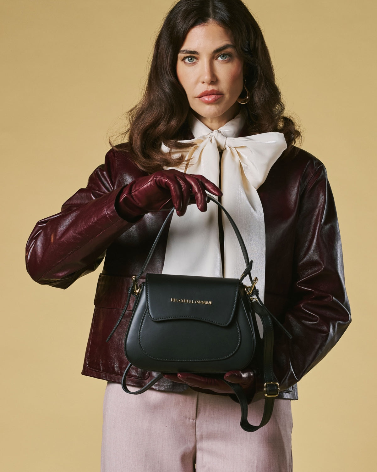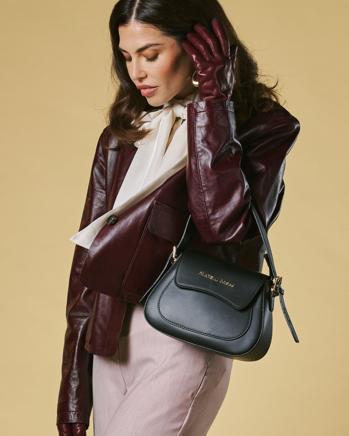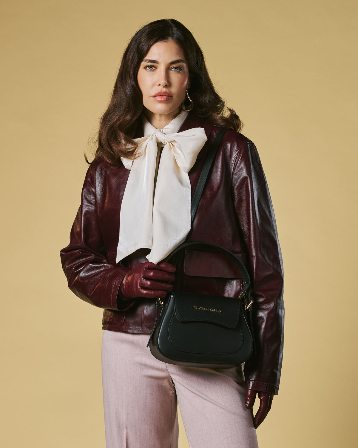 Ottavia (black) - Italian calf leather women's crossbody bag (with shoulder strap)