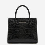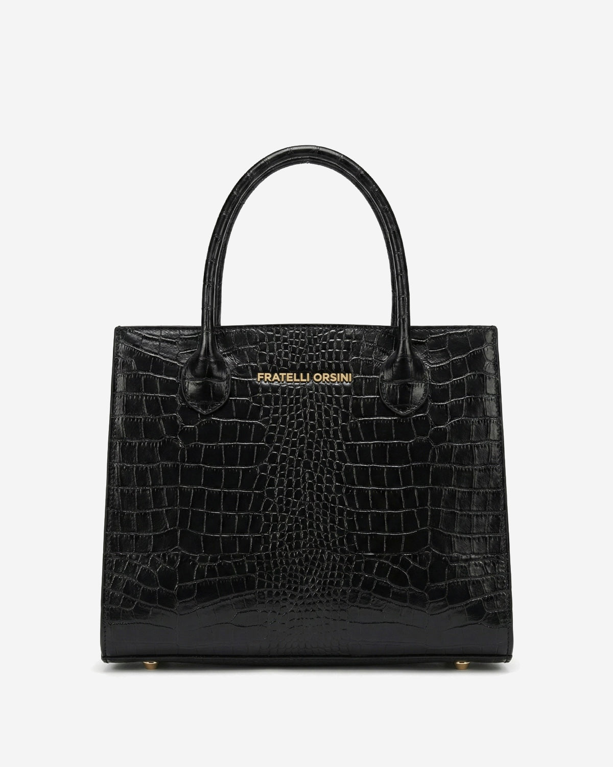 The Patrizia handbag from Fratelli Orsini combines a structured silhouette with a refined, architectural presence. Handmade in Italy by skilled artisans, it is crafted from embossed calf leather with a crocodile texture that adds depth and character while maintaining a polished and elegant look. The top-handle design enhances its poised appearance, making it a sophisticated choice for both business and everyday wear.