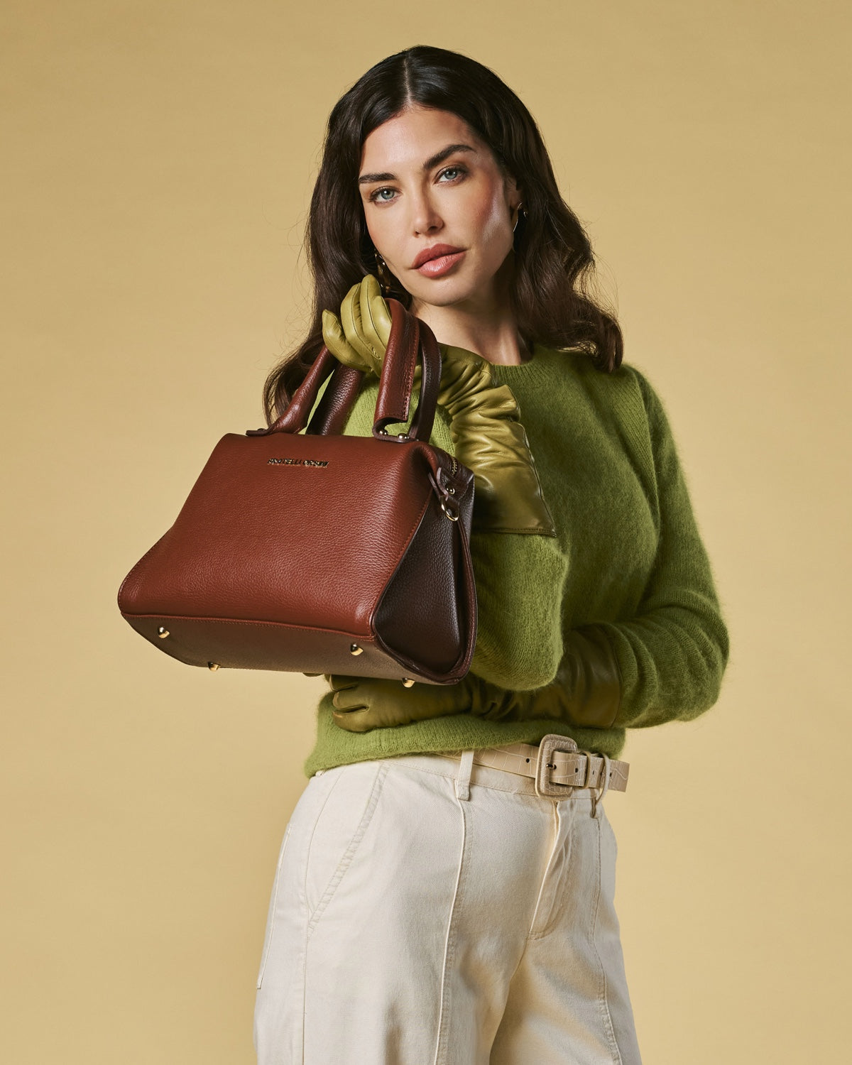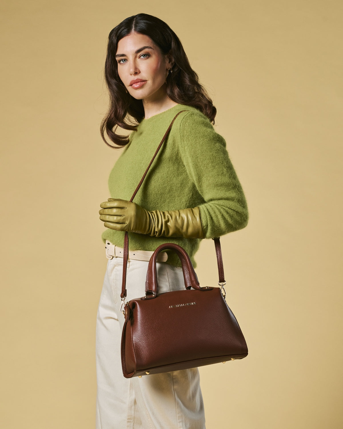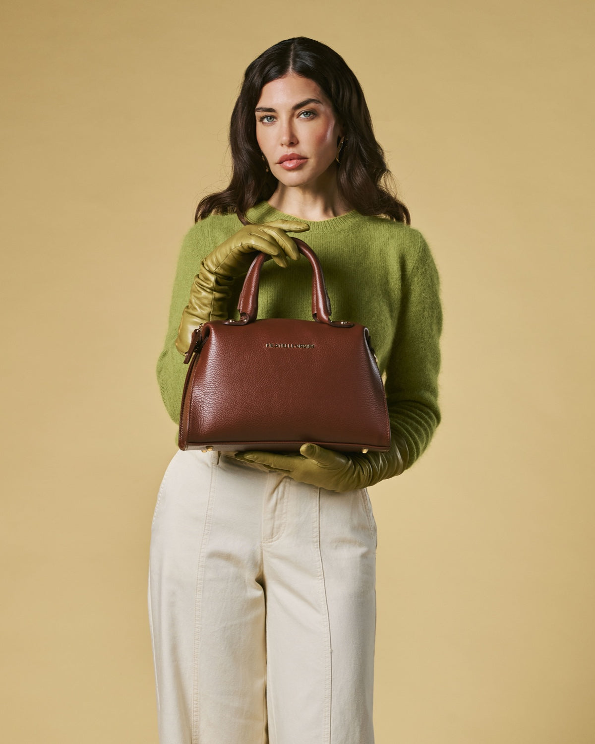 The Zita handbag from Fratelli Orsini is a compact yet structured design that combines modern refinement with classic Italian craftsmanship. Handmade in Italy by skilled artisans, it is crafted from full-grain calf leather with a natural grain texture that gives the bag a soft, tactile finish while maintaining its sculpted shape. The rounded top-handle profile creates a polished look that feels discreet and timeless.