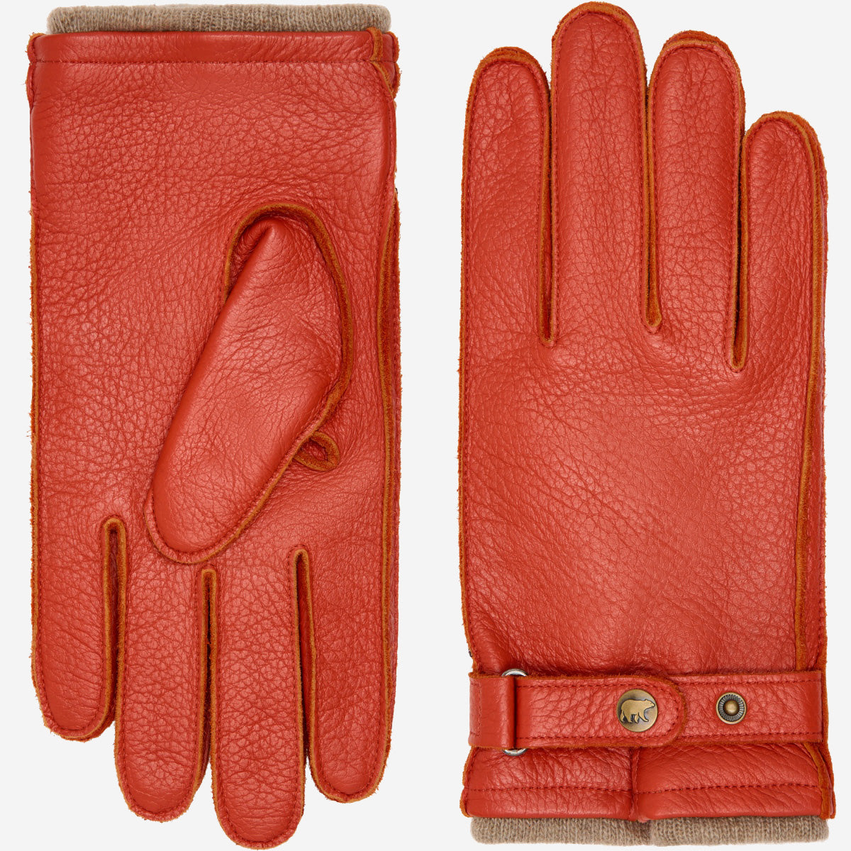 Emilio (orange) – Luxurious Italian deerskin gloves with cashmere lining and adjustable snap button