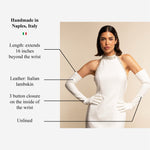 Gabriella (white) - Italian unlined 16-button length leather bridal / opera gloves - Leather Gloves Online - Luxury Leather Gloves - 1