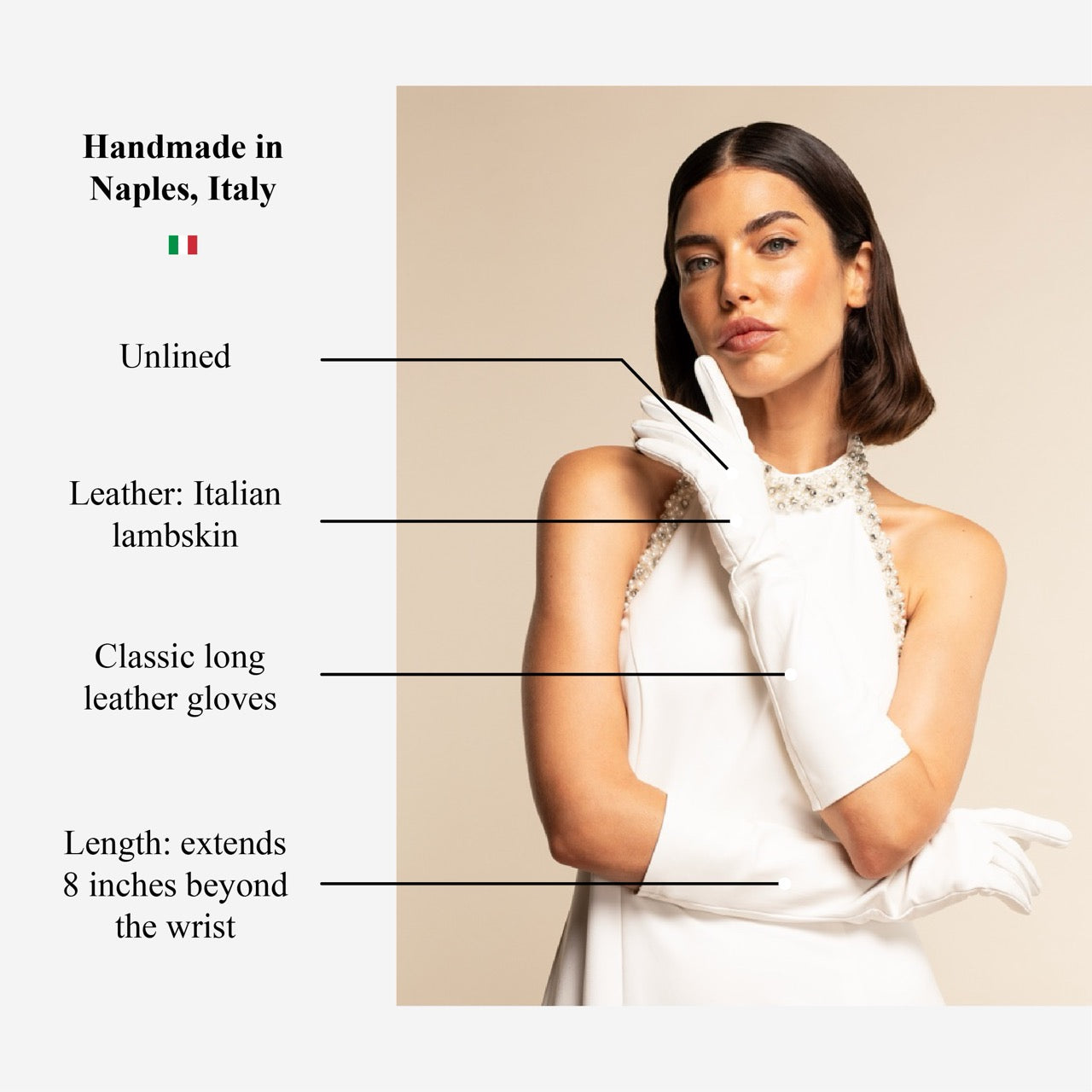 Gabriella (white) - Italian unlined 8-button length leather bridal / opera gloves - Leather Gloves Online - Luxury Leather Gloves - 1