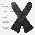 Lucia (black) - Italian unlined 12-button length leather opera gloves