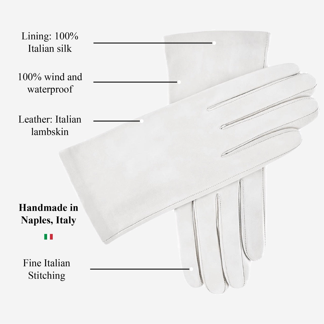 Sofia (white) - Italian lambskin leather gloves with silk lining