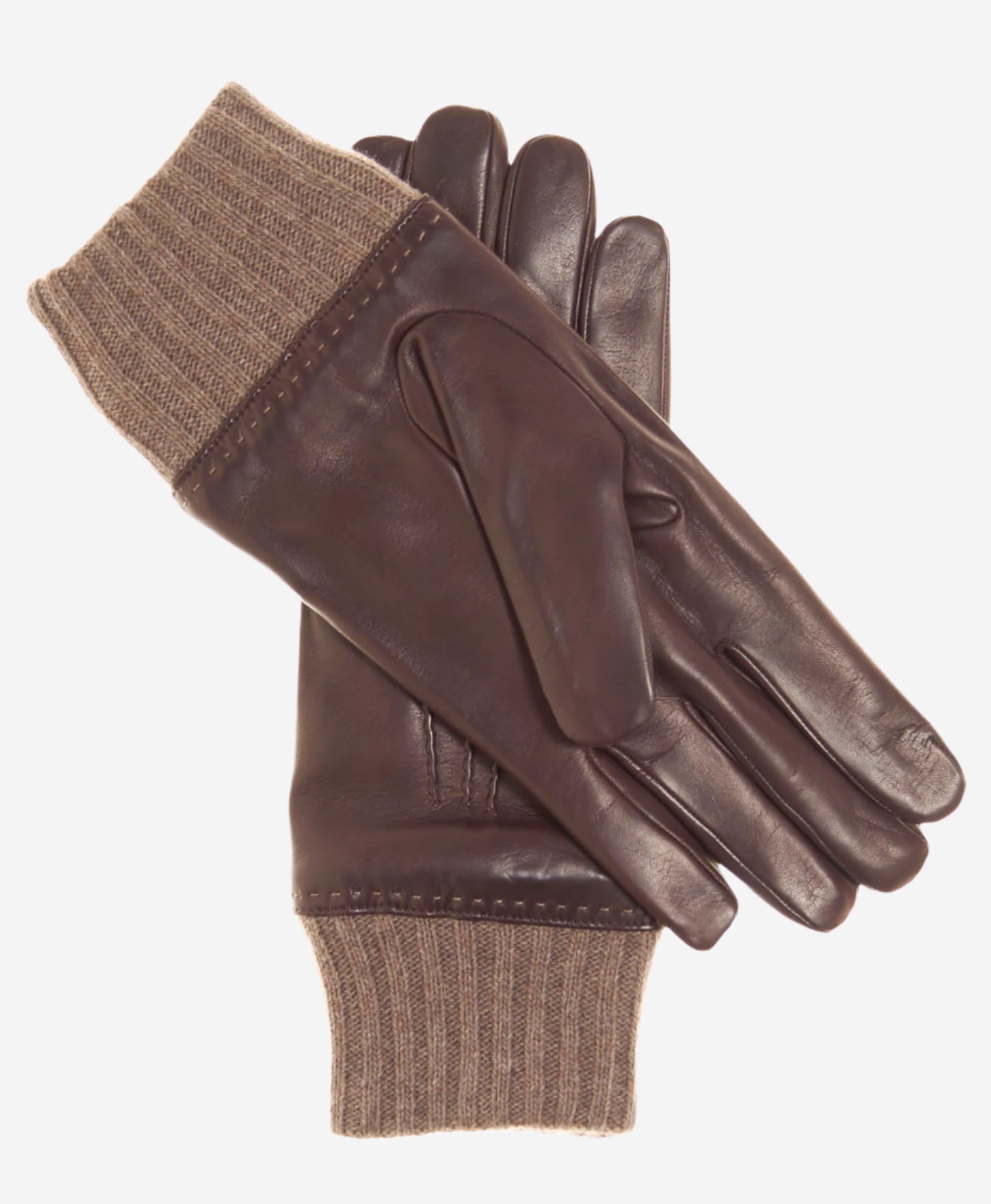 CC3502 (brown) - Men’s Italian lambskin winter gloves with cashmere lining & extended wool cuff