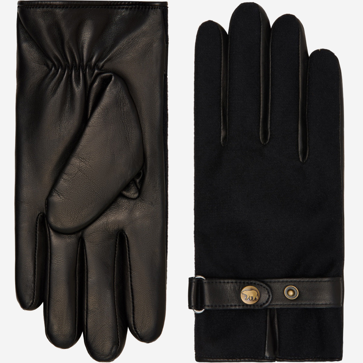 Premium materials: Smooth Italian lambskin leather on the palm ensures durability, comfort, and a secure grip, while the back is finished in soft, textured wool tweed. A leather strap with snap button adds a refined, tailored touch.