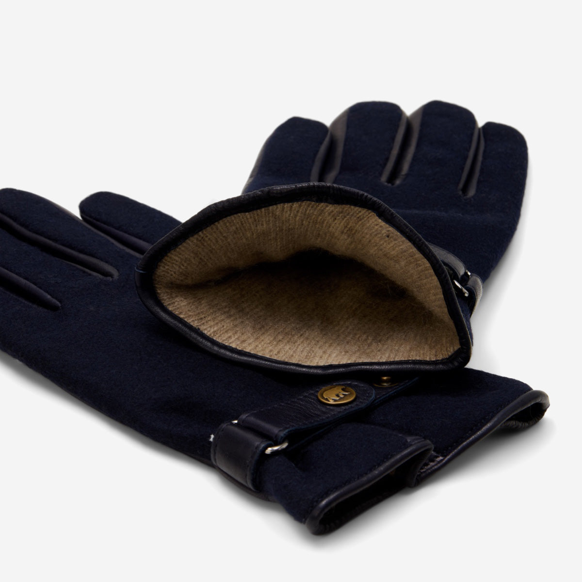 Premium materials: Smooth Italian lambskin leather on the palm ensures durability, comfort, and a secure grip, while the back is finished in soft, textured wool tweed. A leather strap with snap button adds a refined, tailored touch.