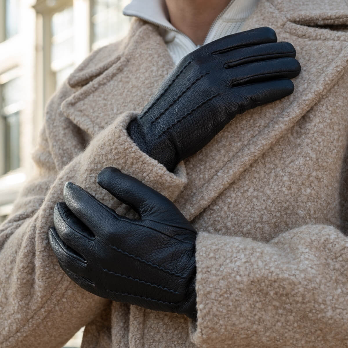 Benjamin (black) – Thick goatskin leather gloves with warm lambswool lining & touchscreen feature