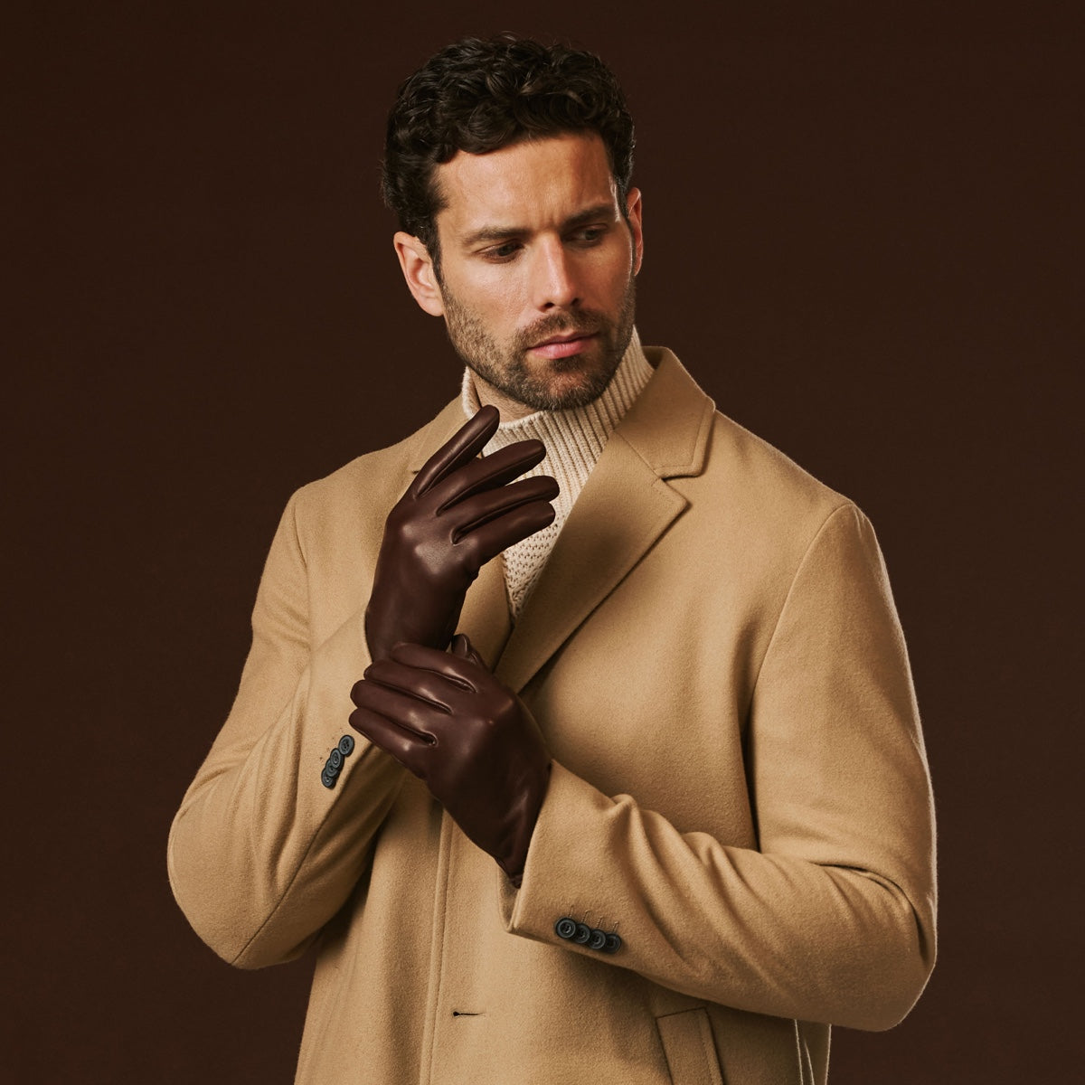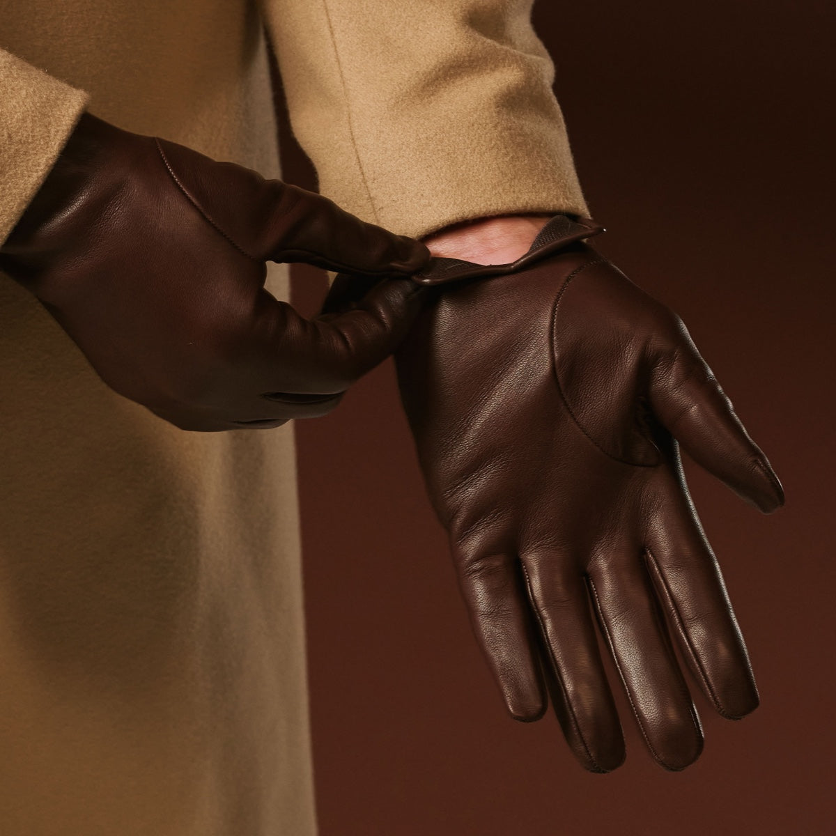 Fabio (brown) - Men's classic Italian lambskin leather gloves with pure silk lining