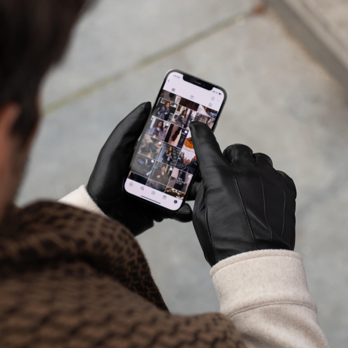 Julian (black) - Classic sheepskin leather gloves with warm fleece lining and touchscreen feature
