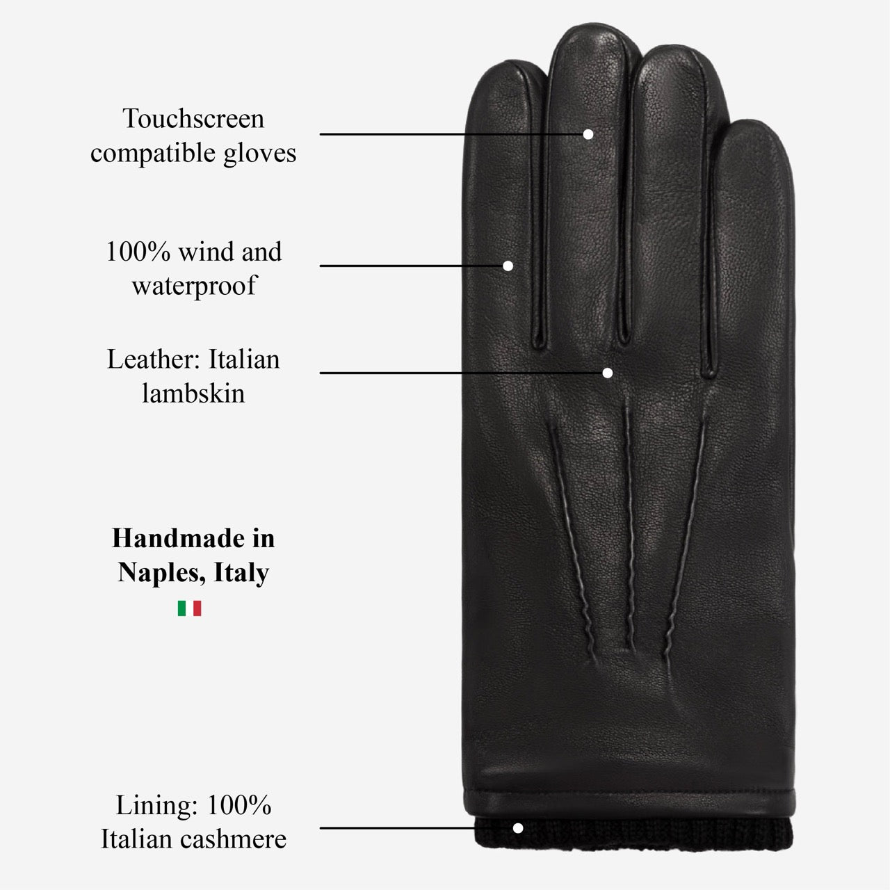 Alessandro (black) - Italian lambskin leather gloves with cashmere lining & touchscreen feature