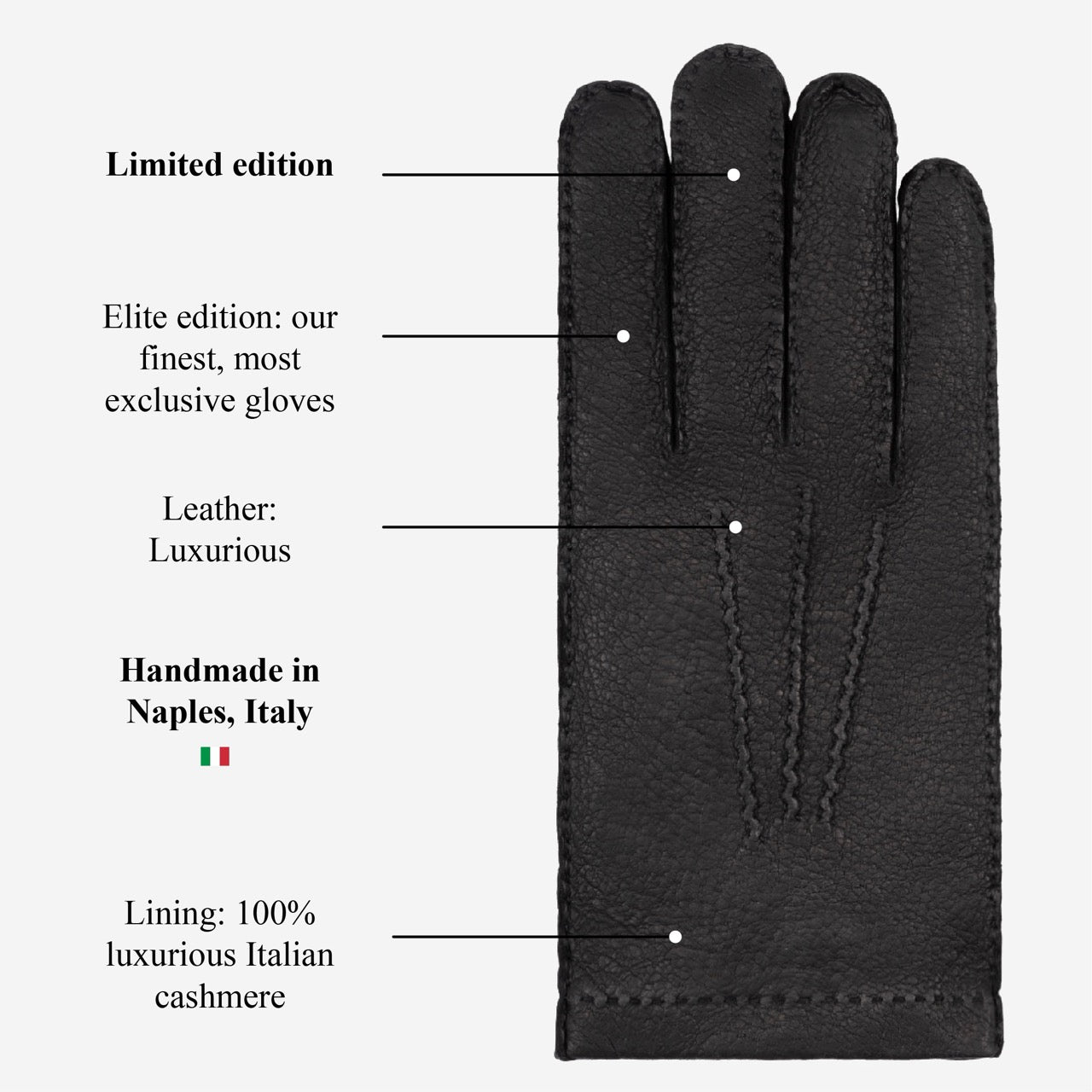 Antonio (black) – Luxurious Italian peccary leather gloves with cashmere lining