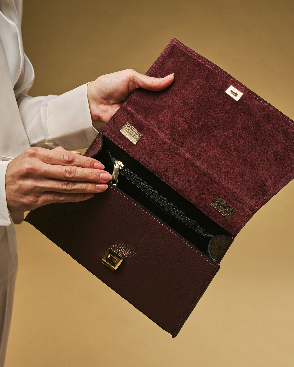 Federica (eggplant) - Italian calf leather women's crossbody bag (with shoulder strap)