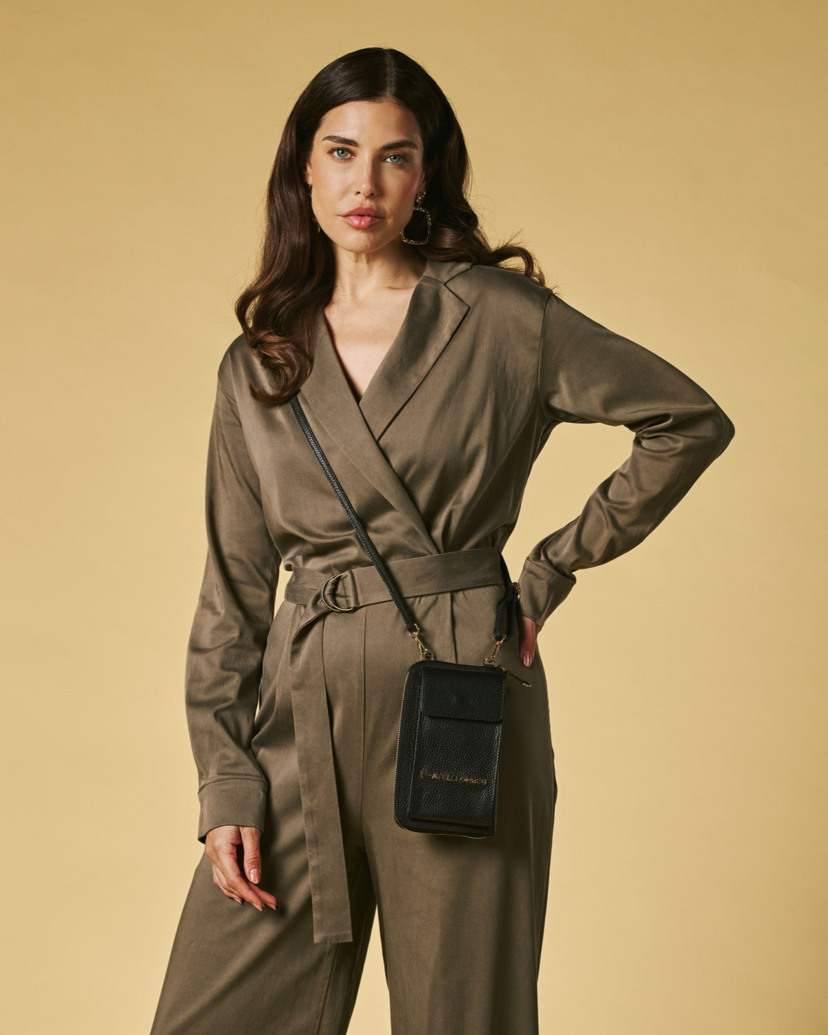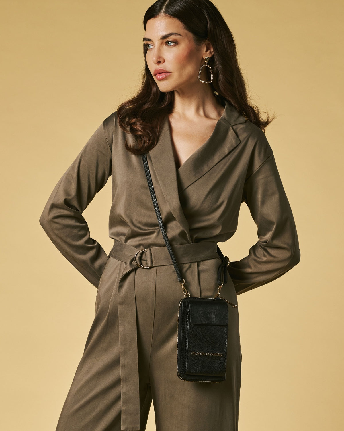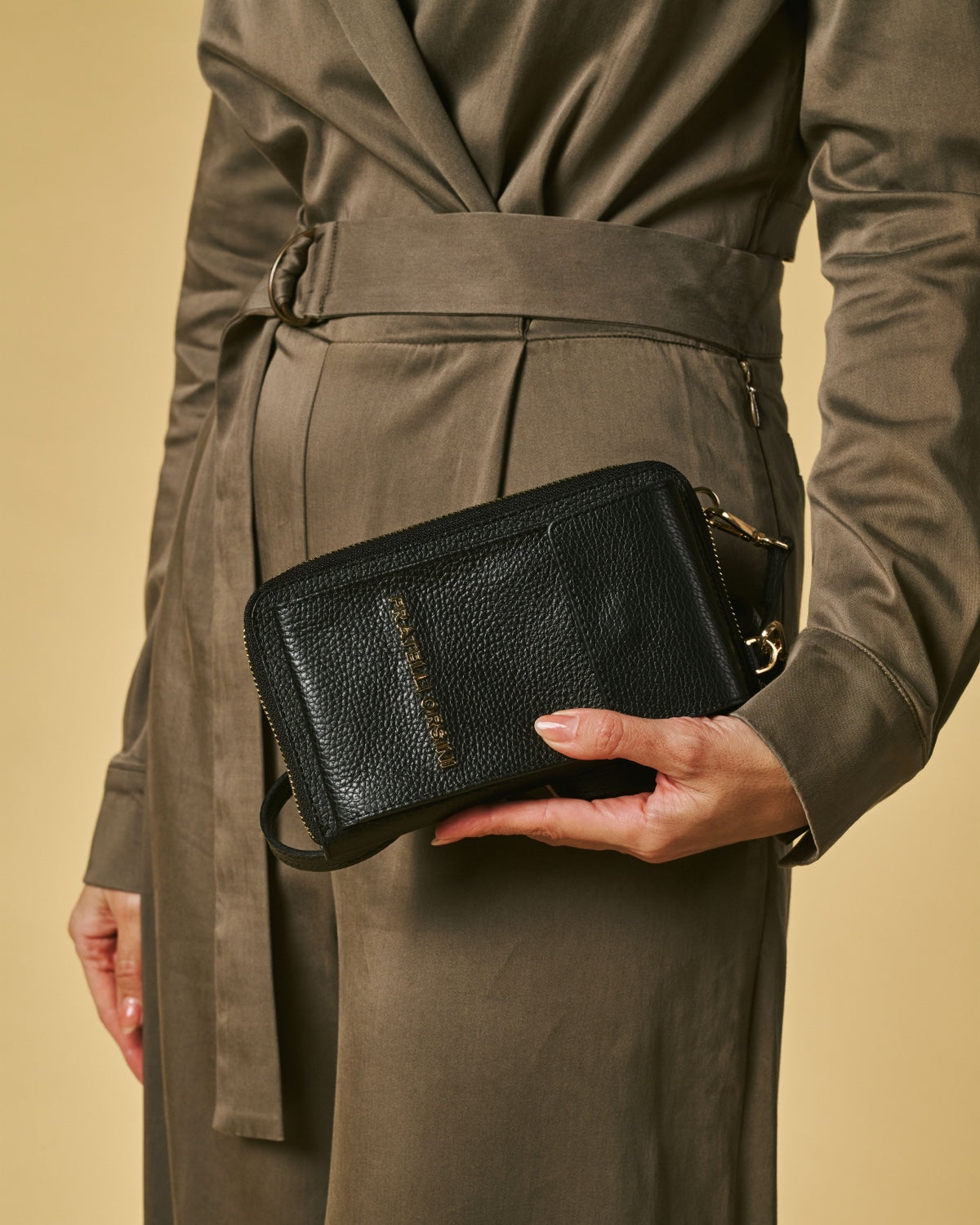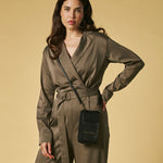 Inside, the Giada offers space for a smartphone along with room for cards and small necessities, functioning as both a compact wallet and a hands-free bag. It measures 11 cm in width, 19 cm in height and 2 cm in depth, making it ideal for travel, city wear, or occasions when a full-sized handbag is not needed. A slender strap allows it to be worn crossbody or over the shoulder, offering effortless versatility in a lightweight form.