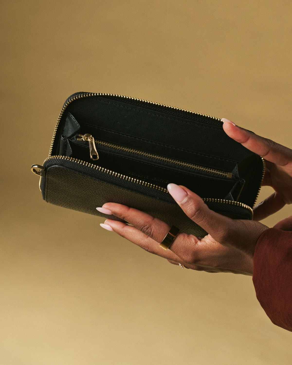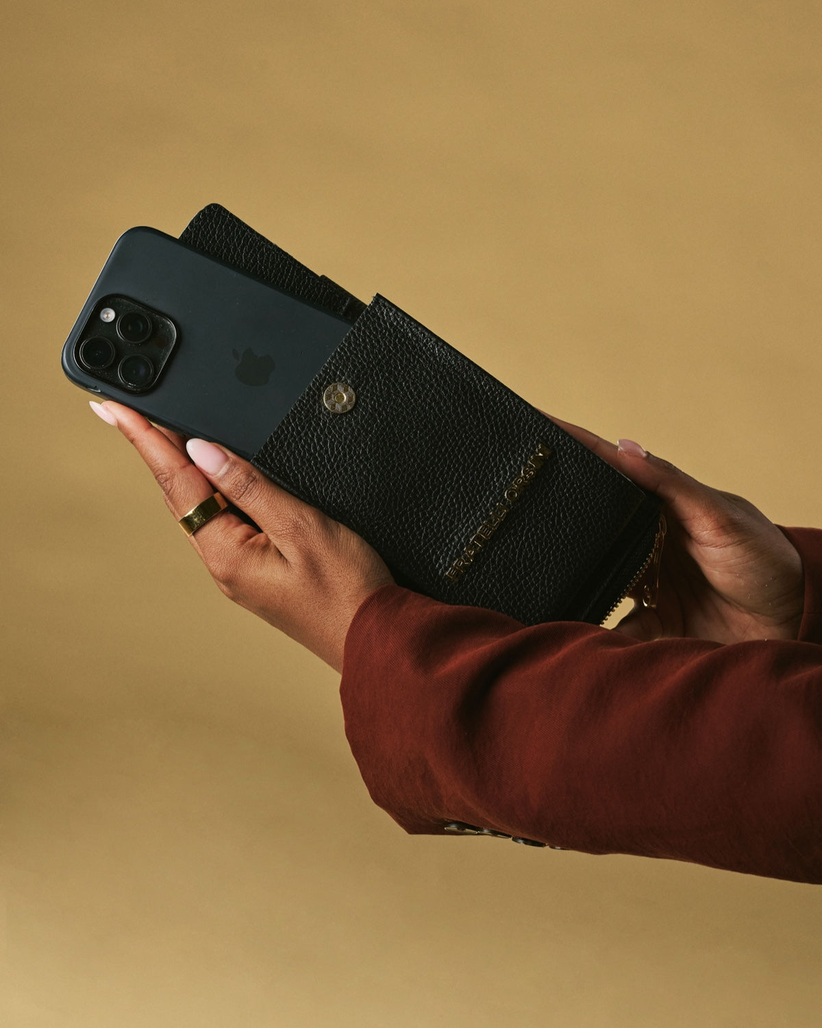 Fits a phone plus cards or small essentials